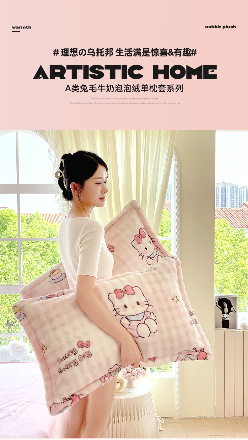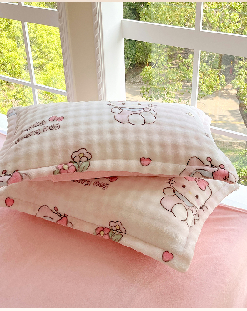 商品名称:凯儿家纺 2025新款兔毛牛奶泡泡绒单枕套单品枕套枕套单件 可爱猫咪