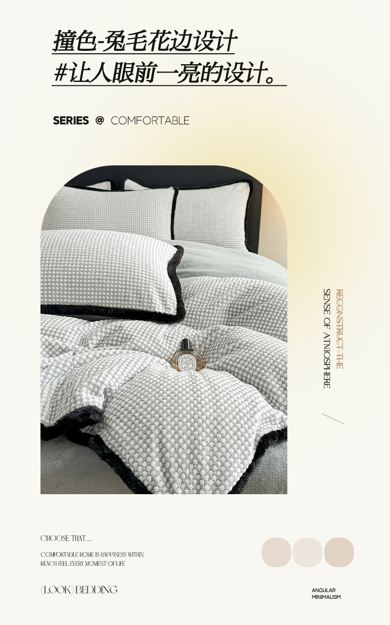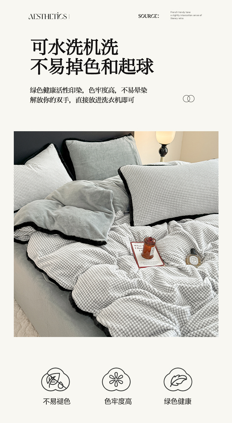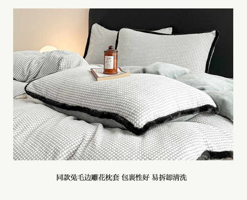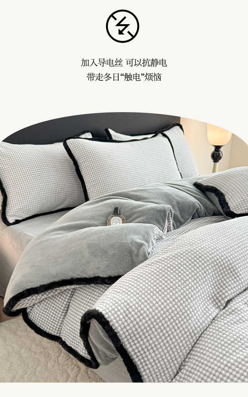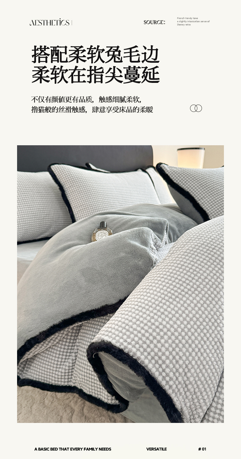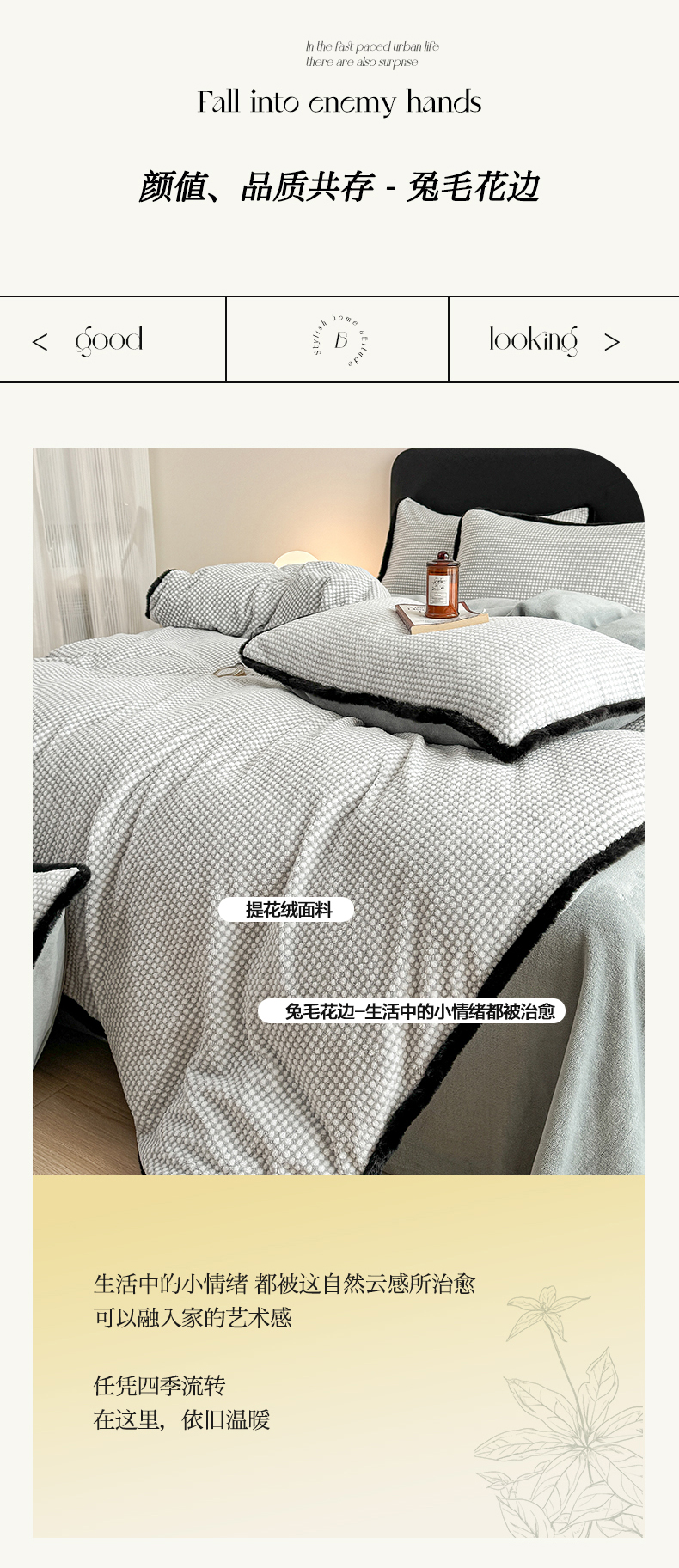 商品名称:KA家纺 2025冬兔毛边阳离子提花牛奶绒四件套 温雅系列 温雅灰