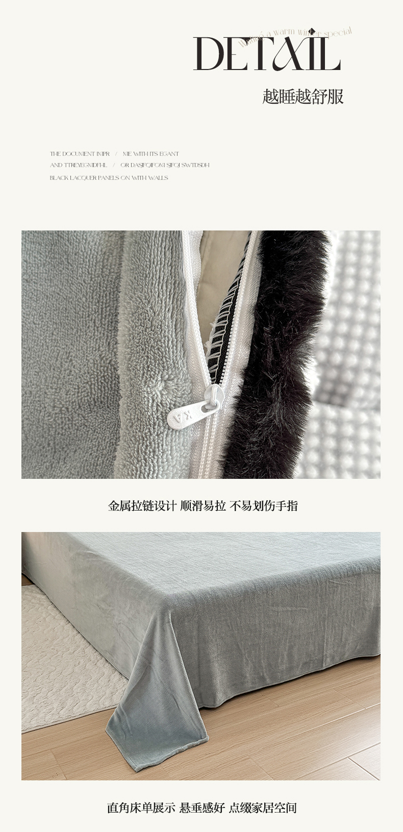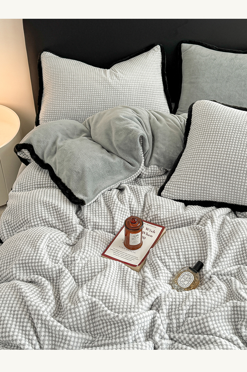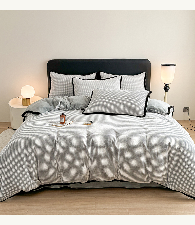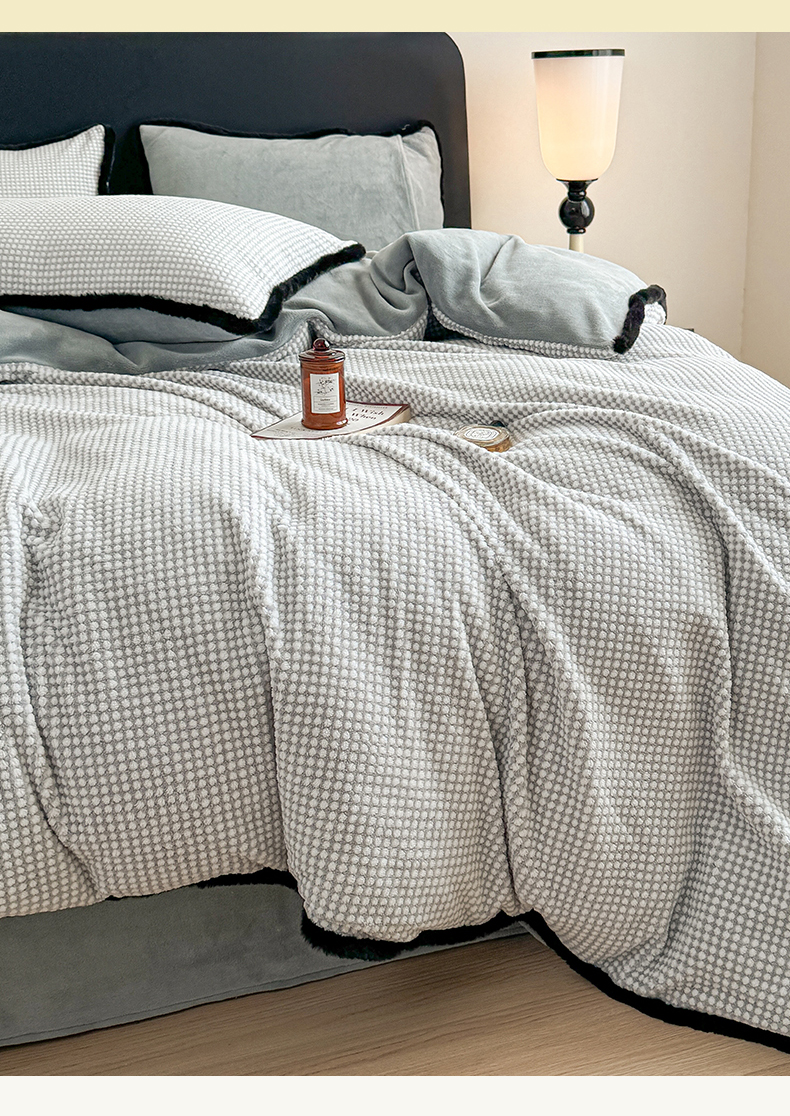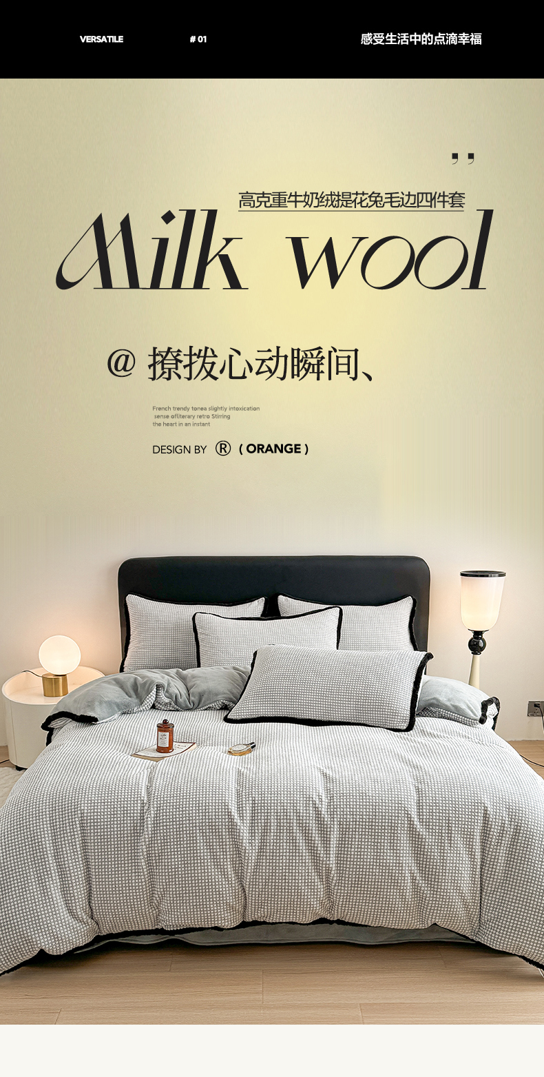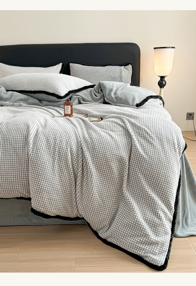 商品名称:KA家纺 2025冬兔毛边阳离子提花牛奶绒四件套 温雅系列 温雅灰