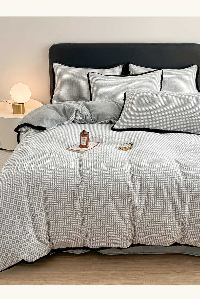 KA家纺 2025冬兔毛边阳离子提花牛奶绒四件套 温雅系列 温雅灰