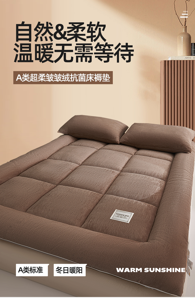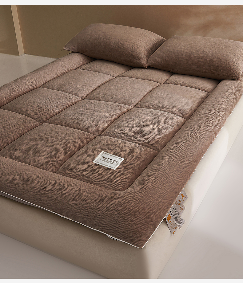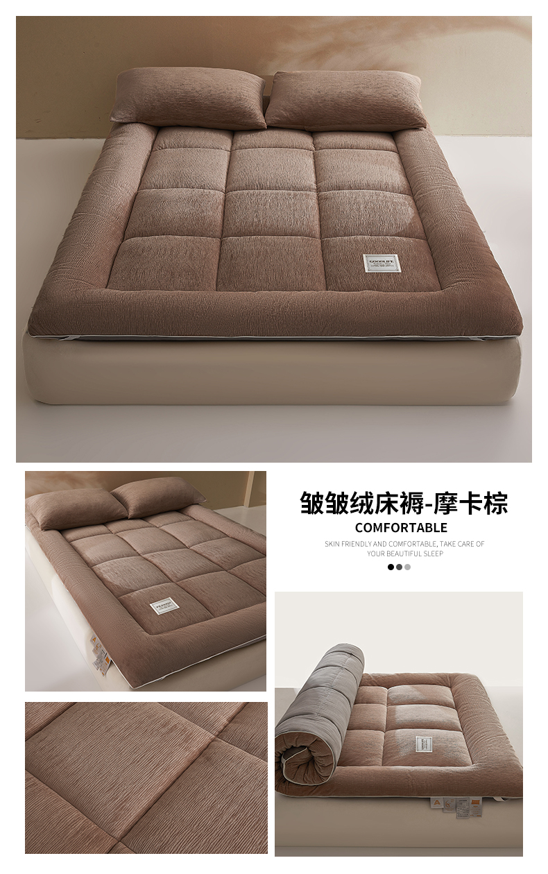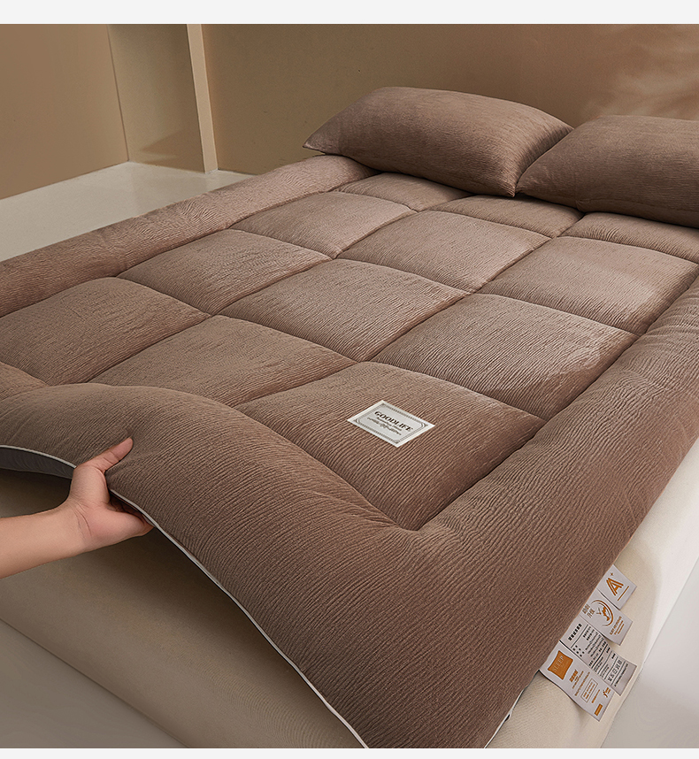 商品名称:雯豆家纺 2025新款皱皱绒加厚款床垫床护垫保暖床褥子 皱皱绒床褥-摩卡棕