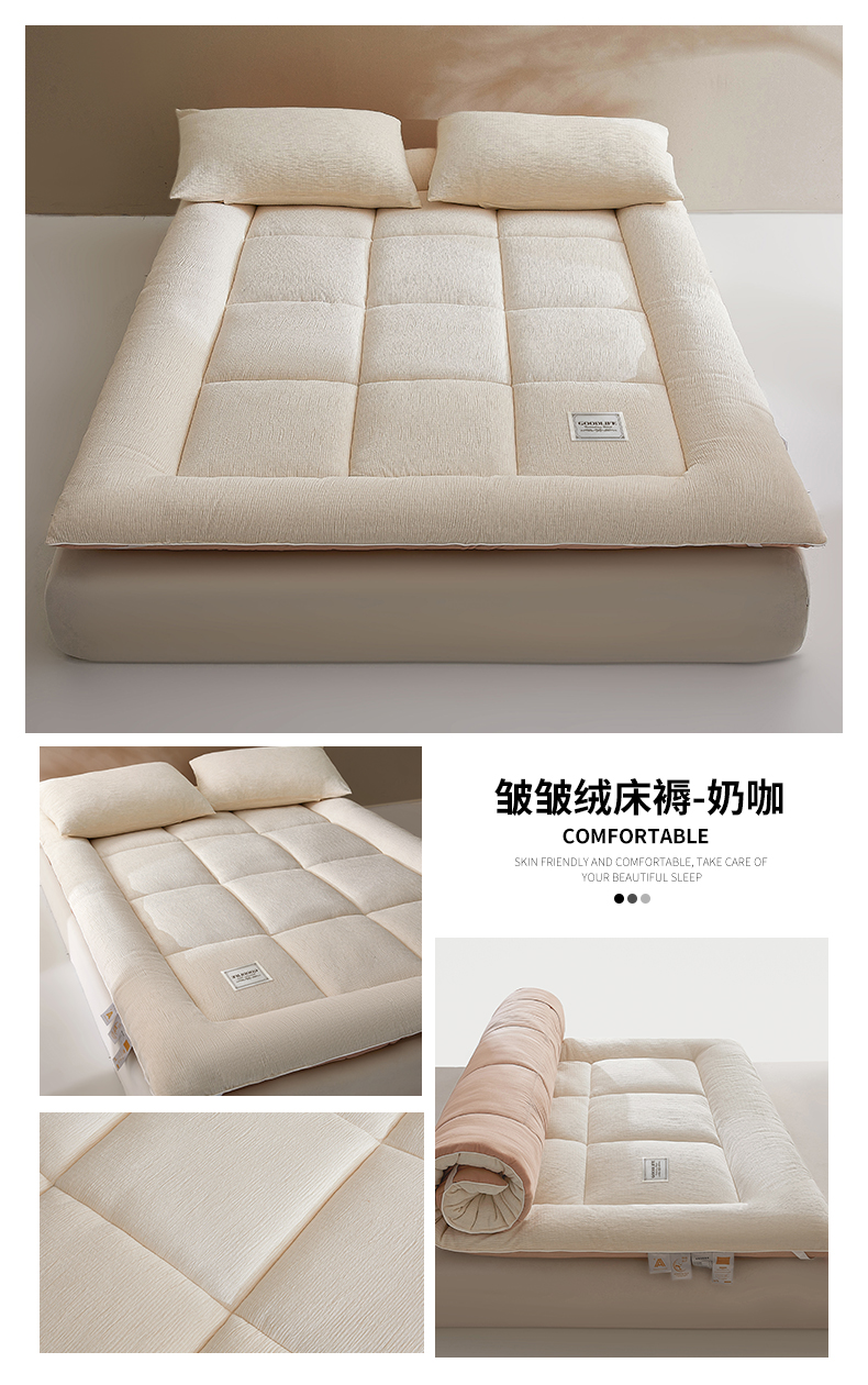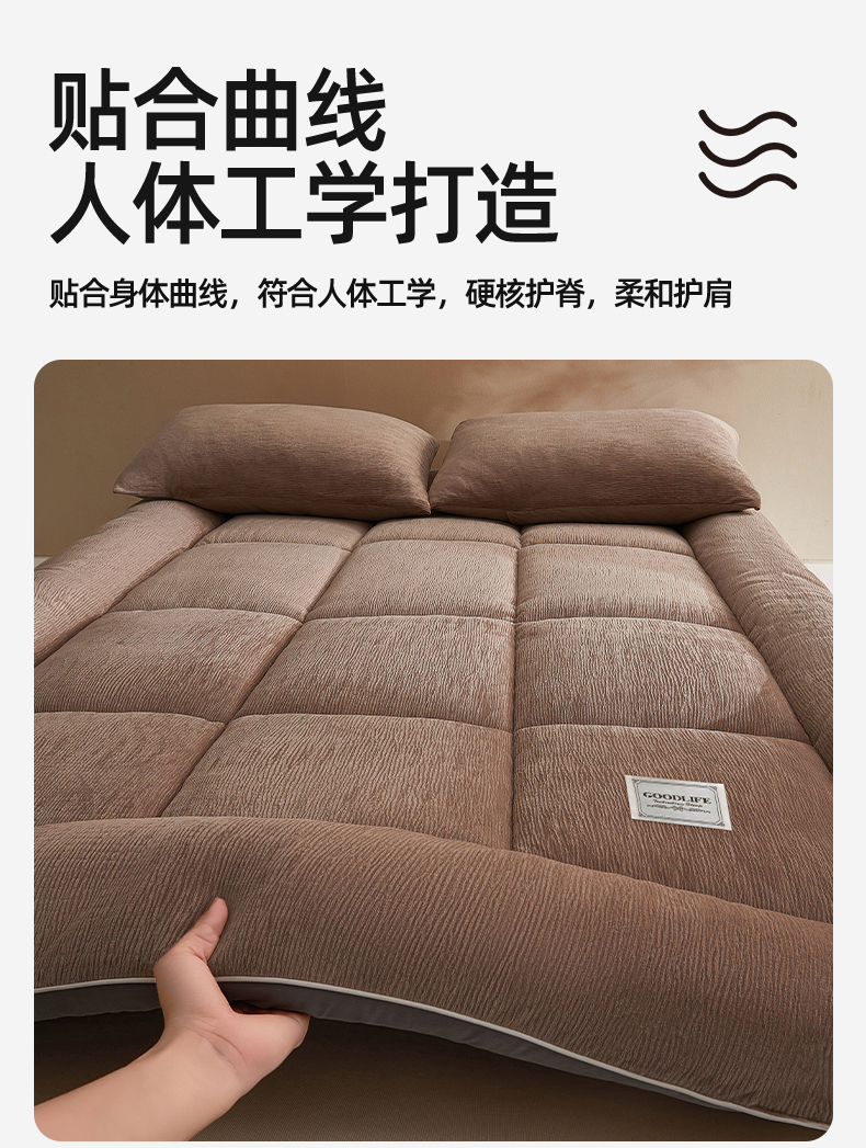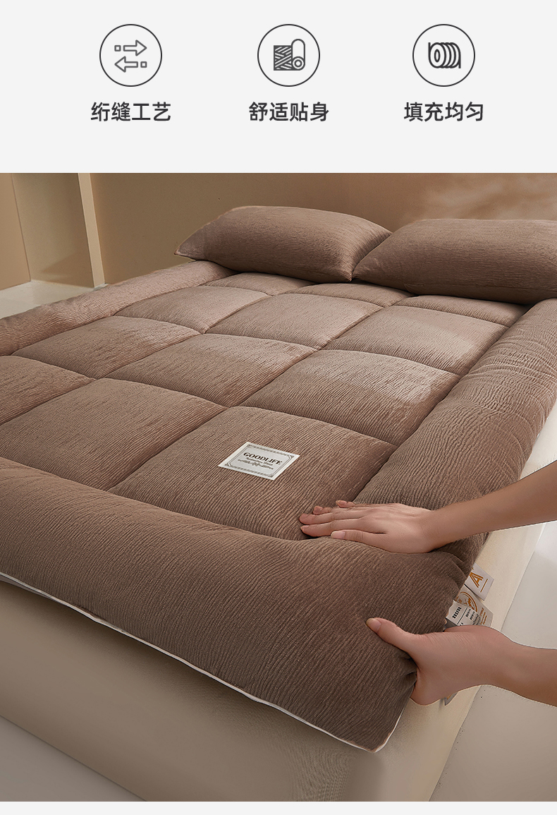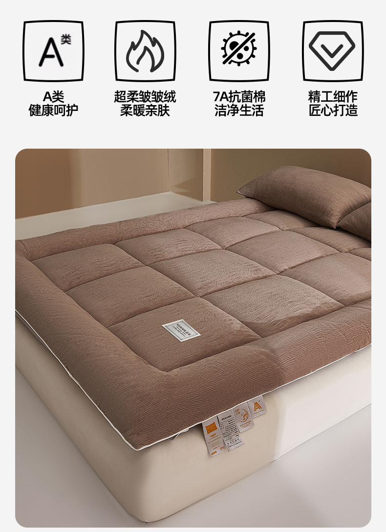 商品名称:雯豆家纺 2025新款皱皱绒加厚款床垫床护垫保暖床褥子 皱皱绒床褥-摩卡棕