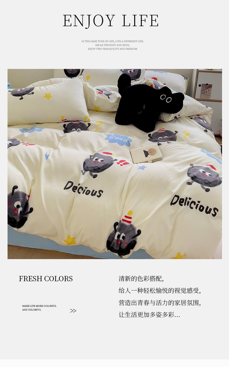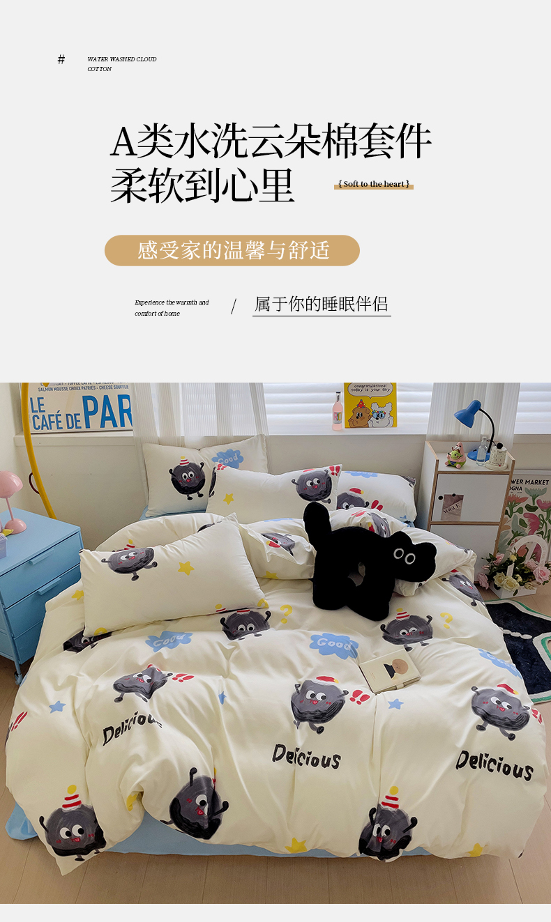 当前位置: 91家纺网 > 商品网购 > 床品套件 > 四件套 > 其它四件套 > 2025开学季新款学生宿舍三件套被套小清新卡通超柔水洗云朵棉四件套 黑煤球