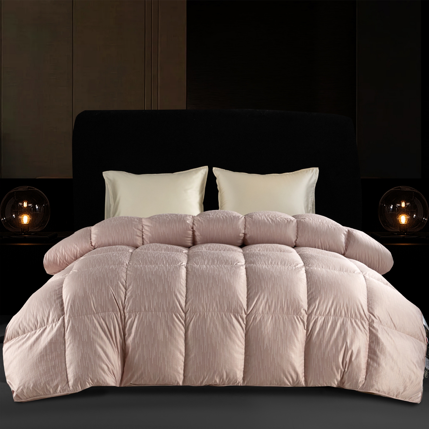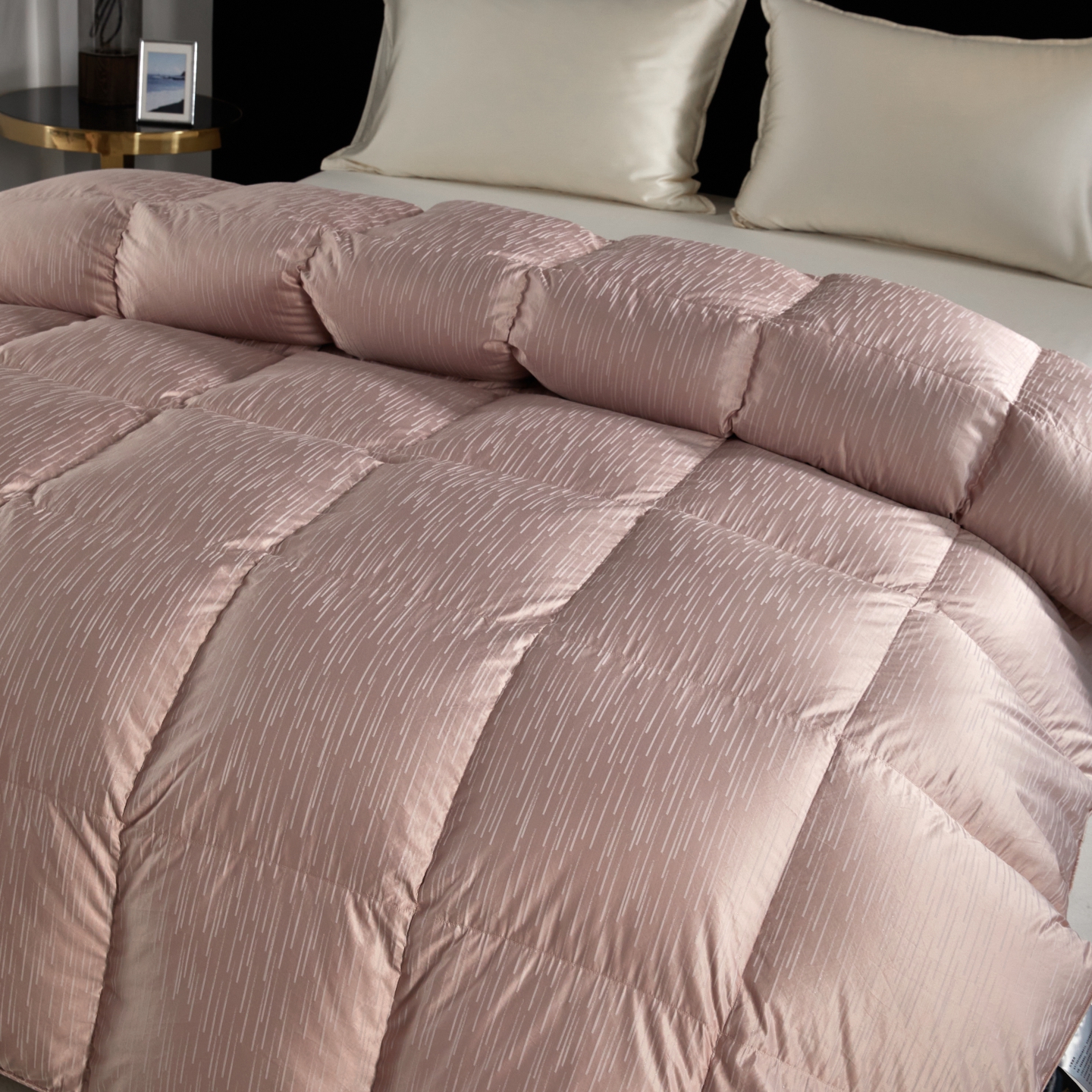 • 91家纺网 家纺一手货源 找家纺 (总)静若居 2025新款高端提花羽绒被鸭绒被贡缎提花单层羽绒被壳,飘颜粉,飘金色,飘高级灰
