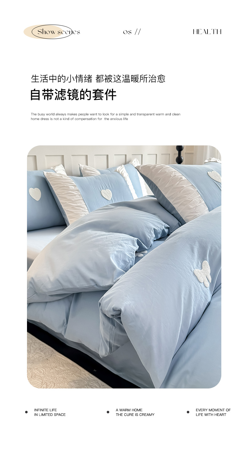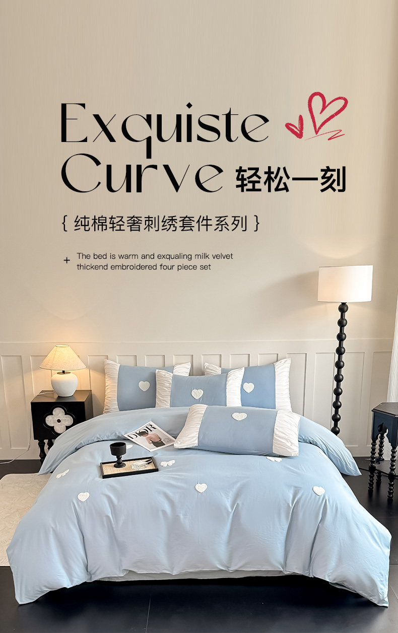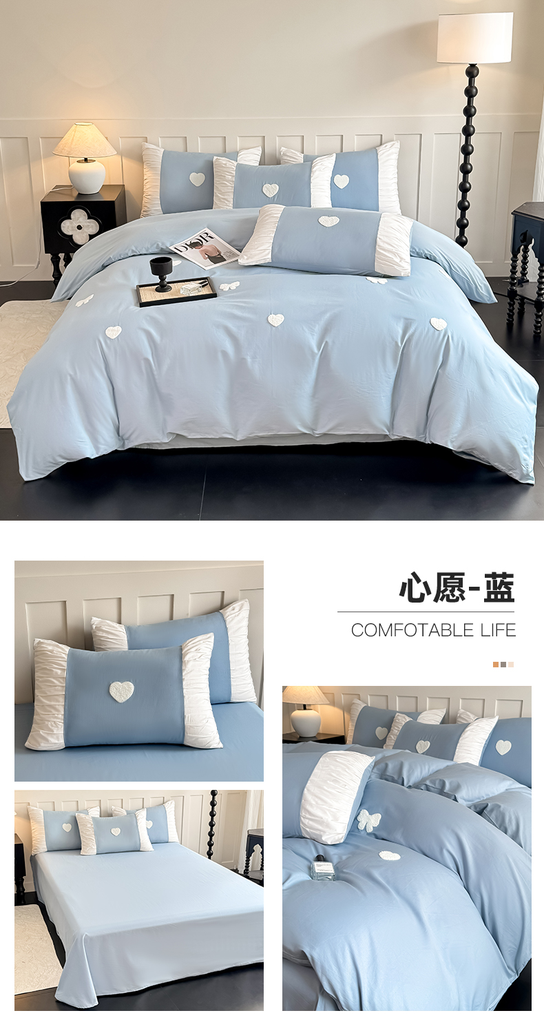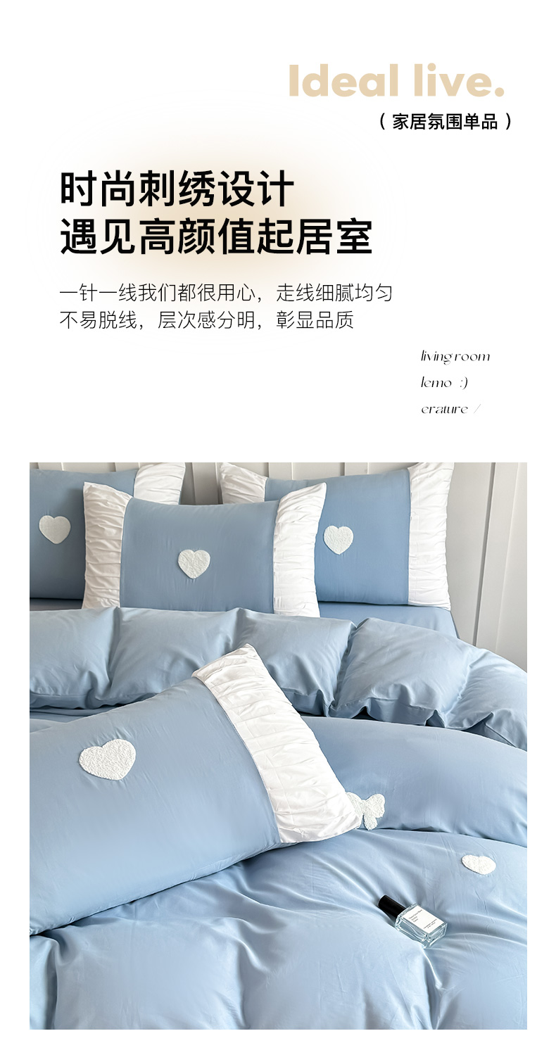 理想家家纺 2025新款纯棉轻奢刺绣四件套-心愿系列 心愿-蓝
