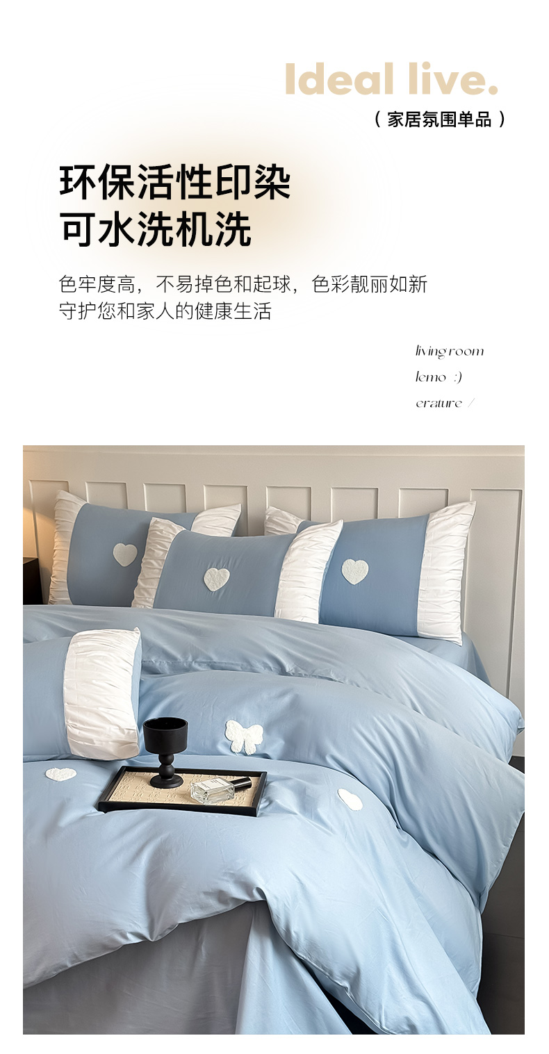 商品名称:理想家家纺 2025新款纯棉轻奢刺绣四件套-心愿系列 心愿-蓝