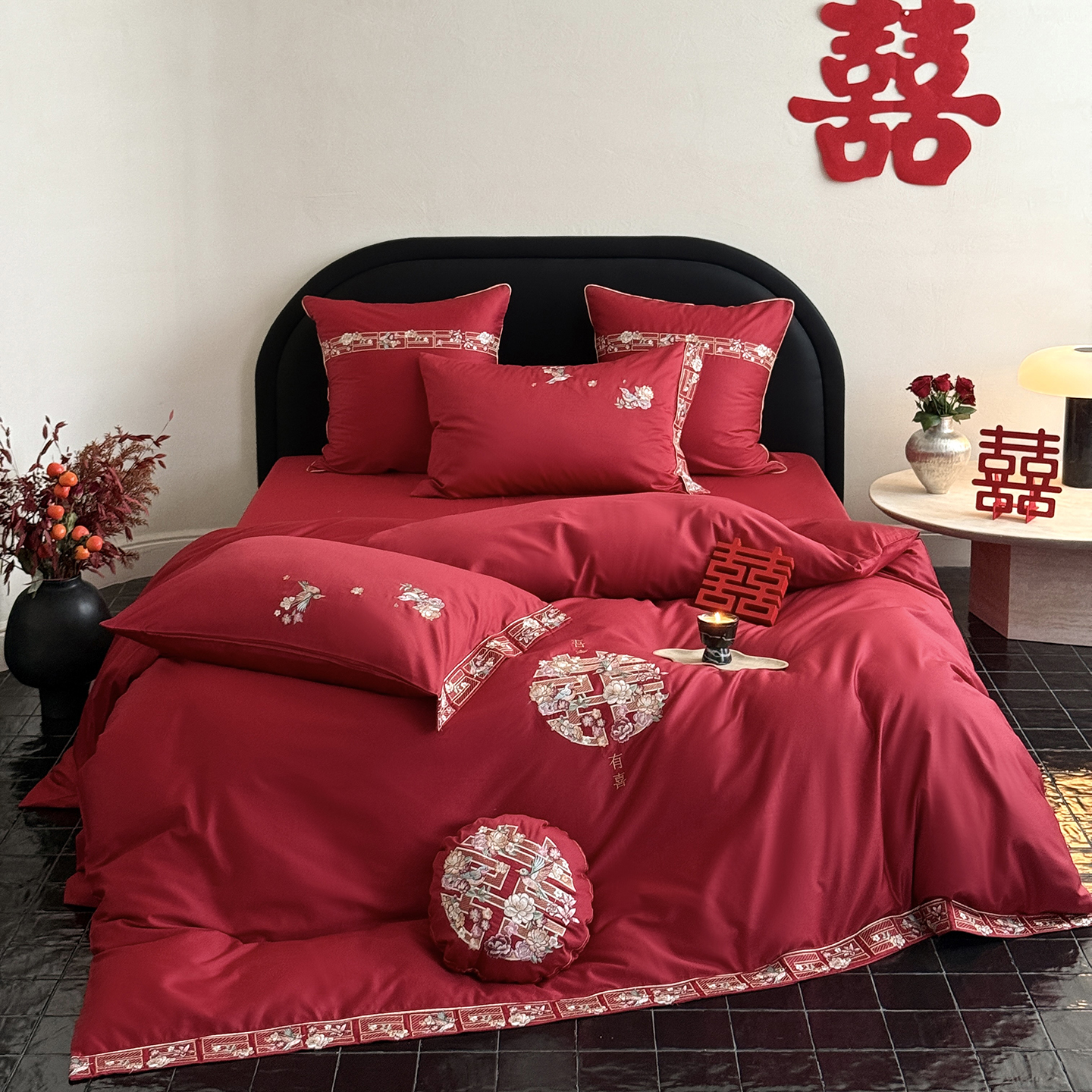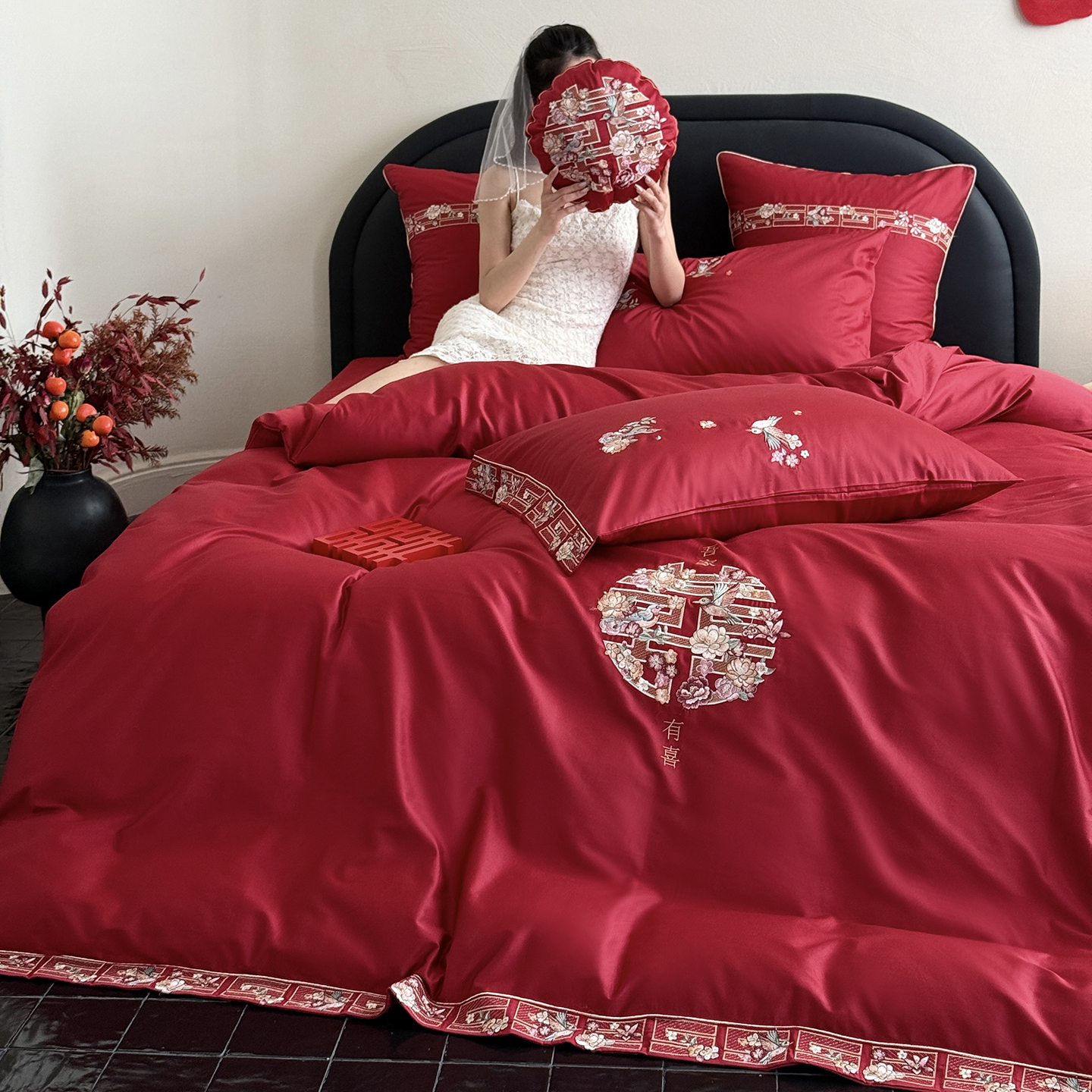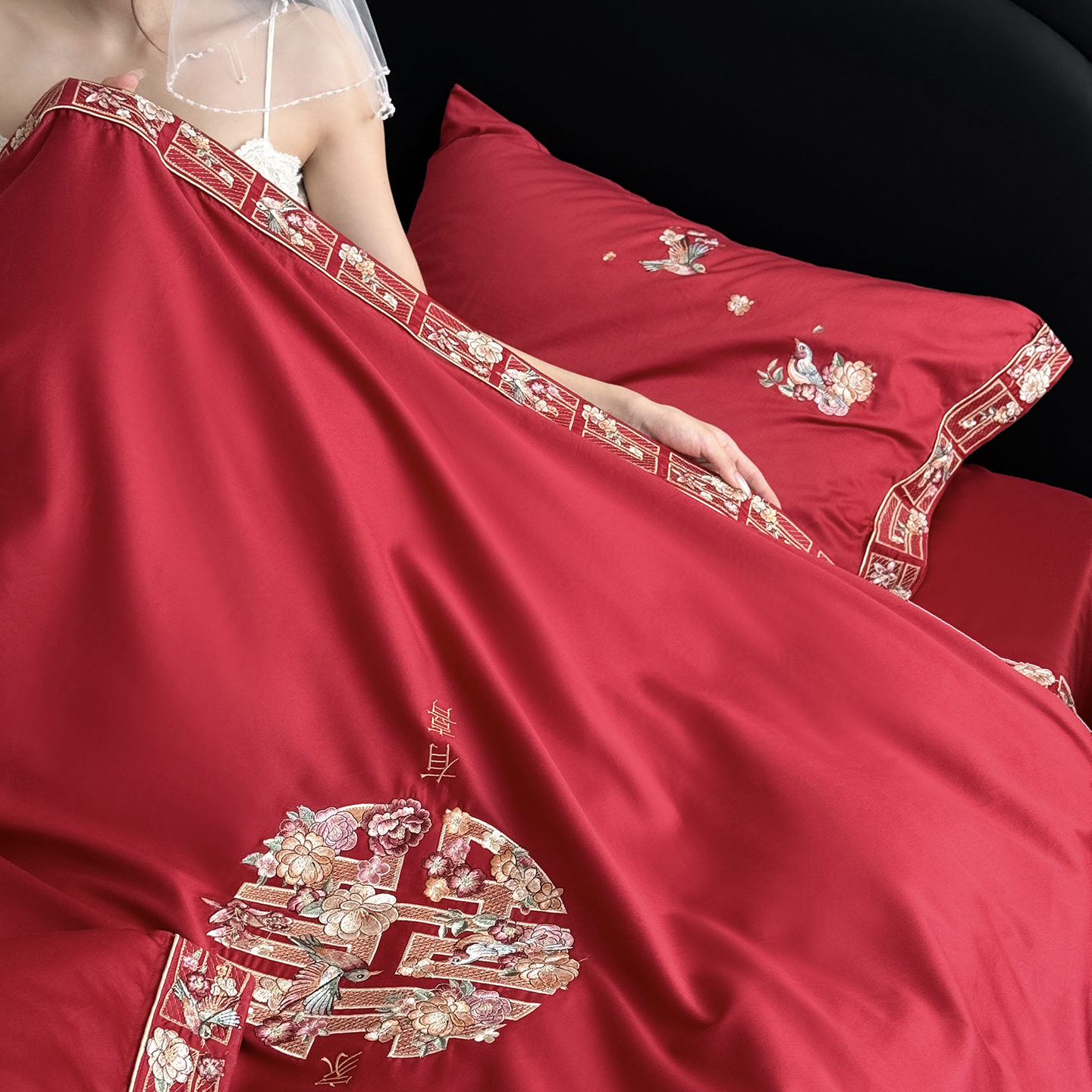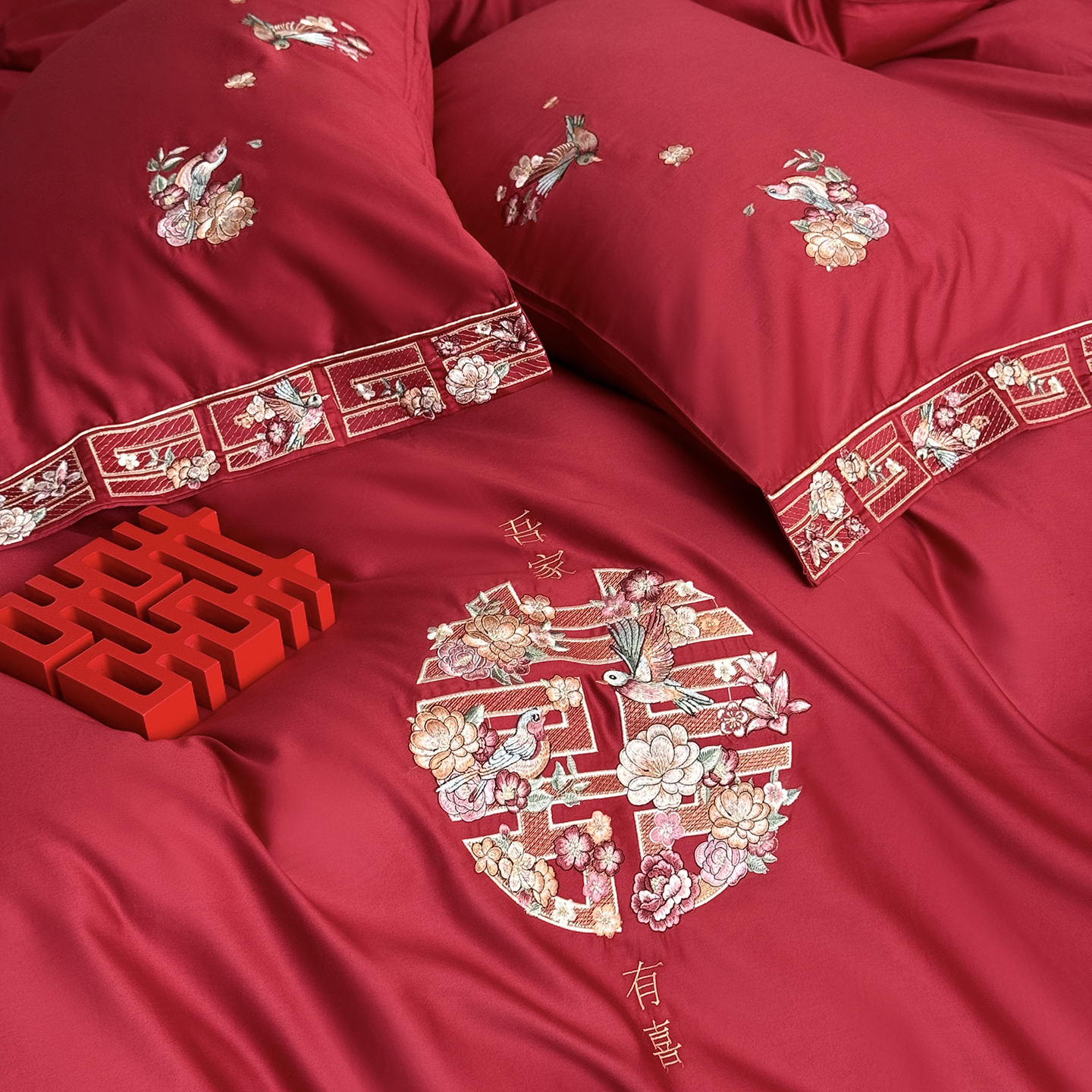 (总)江涞 2026新款100支长绒棉进口高端刺绣可摘卸流苏四件套-迎喜(淘宝券后不低于 418/438),迎喜