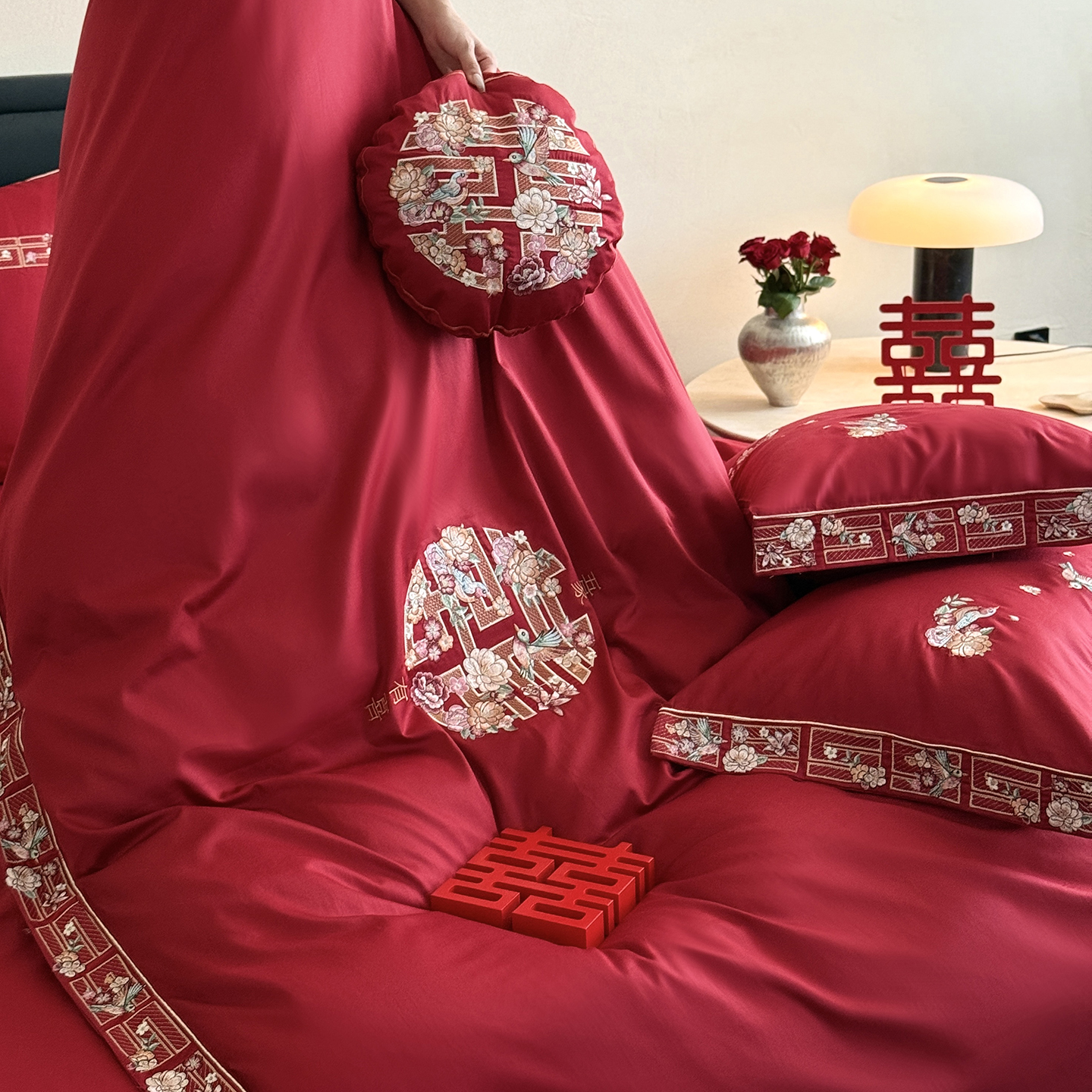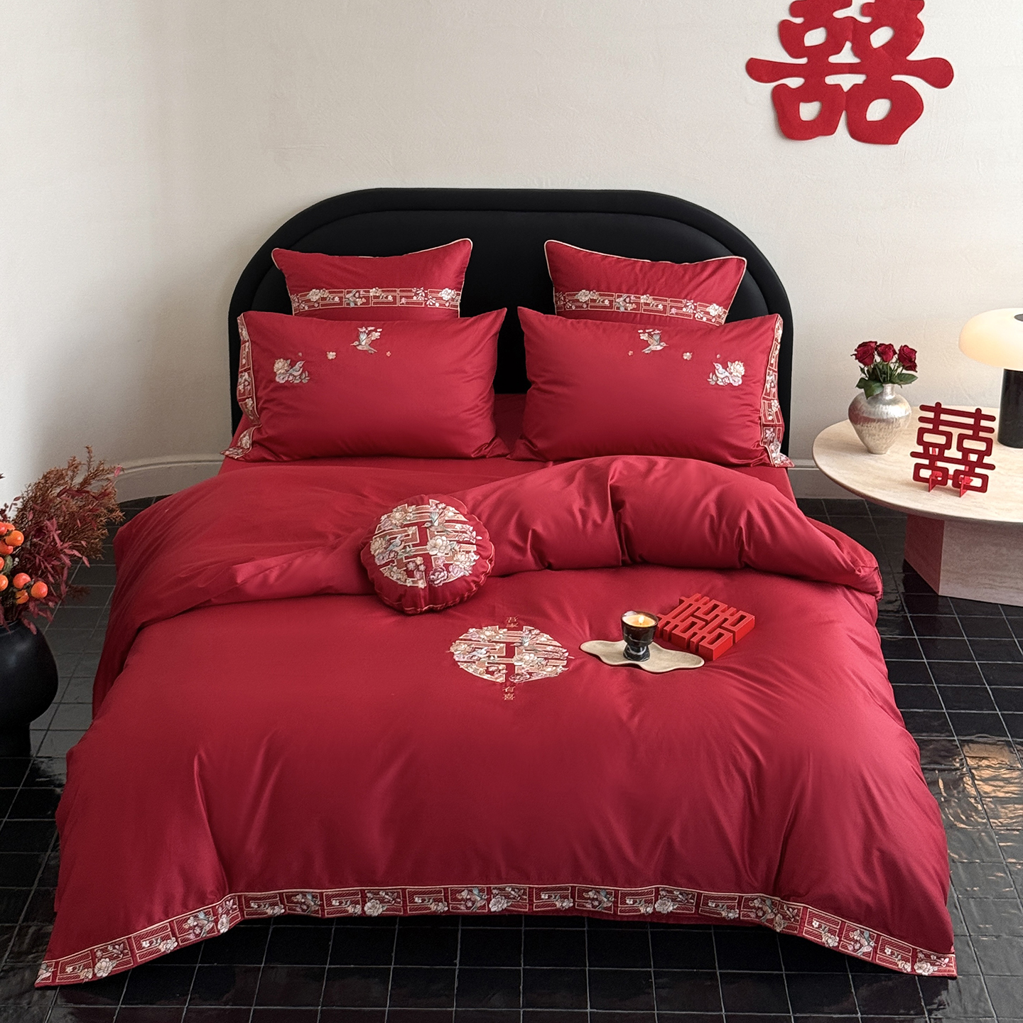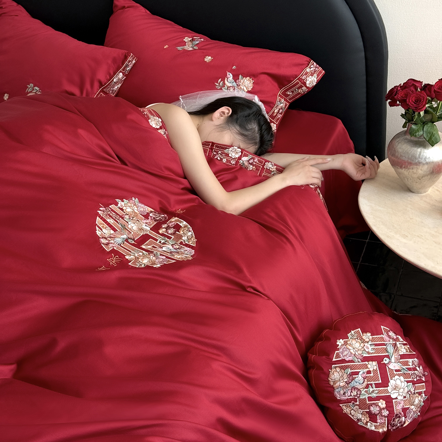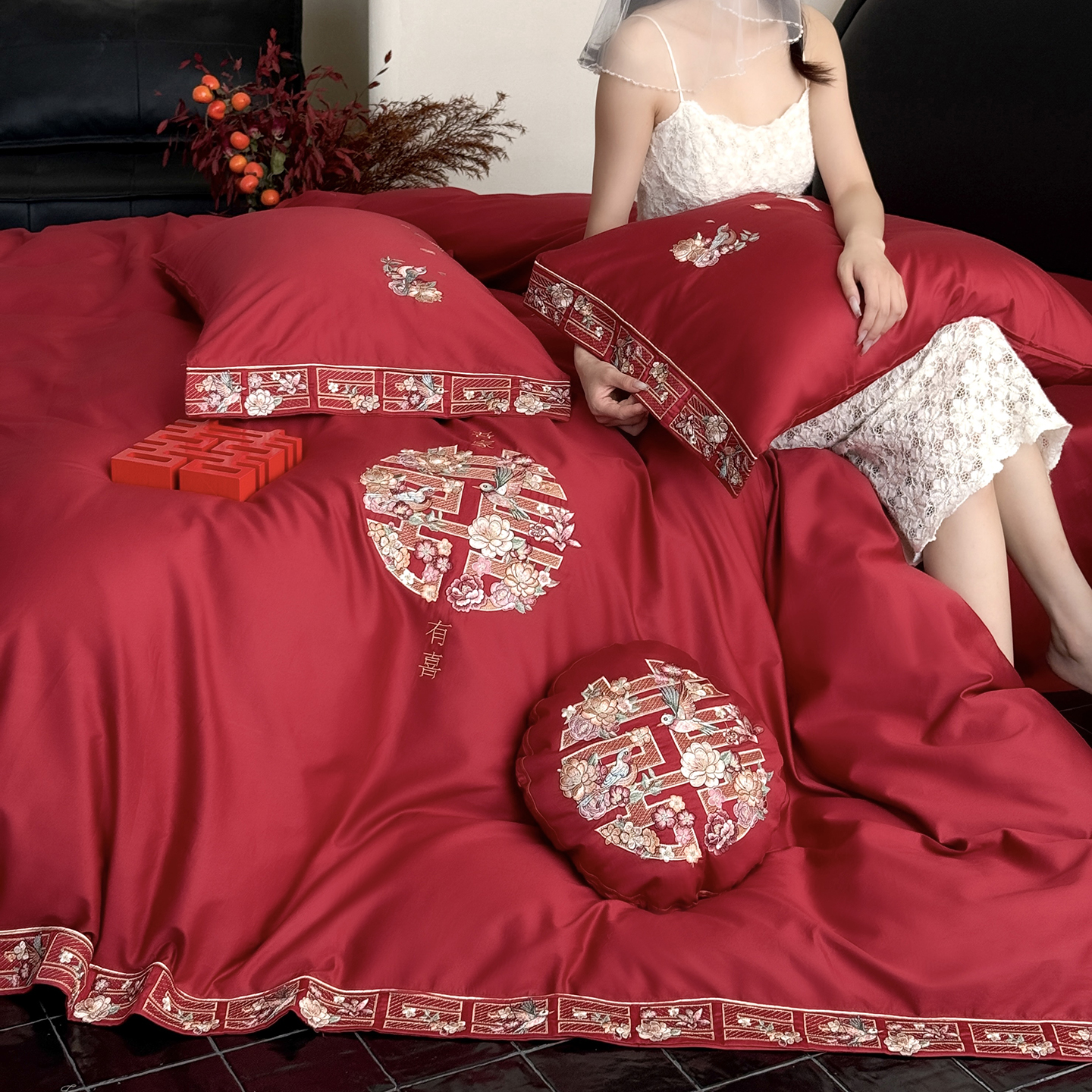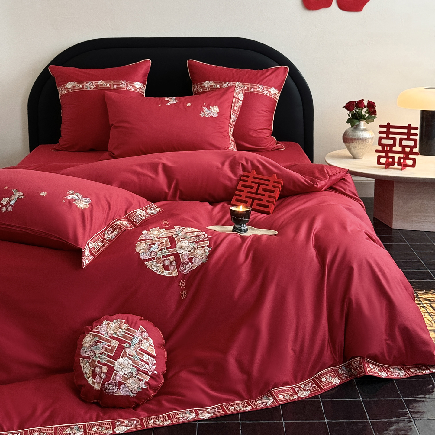 (总)江涞 2026新款100支长绒棉进口高端刺绣可摘卸流苏四件套-迎喜(淘宝券后不低于 418/438),迎喜