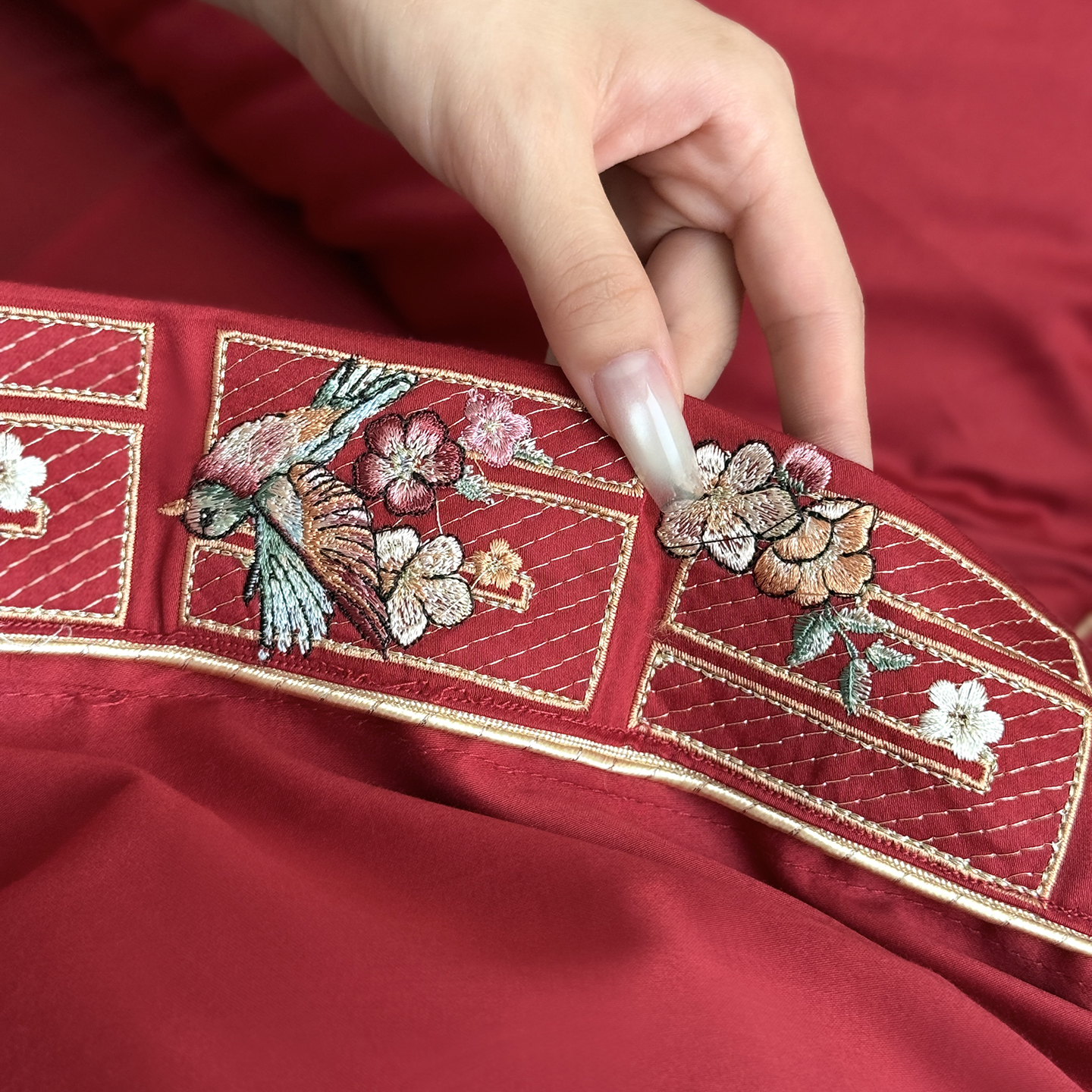 (总)江涞 2025新款100支长绒棉刺绣四件套-鹊喜(券后不低于368/388),鹊喜
