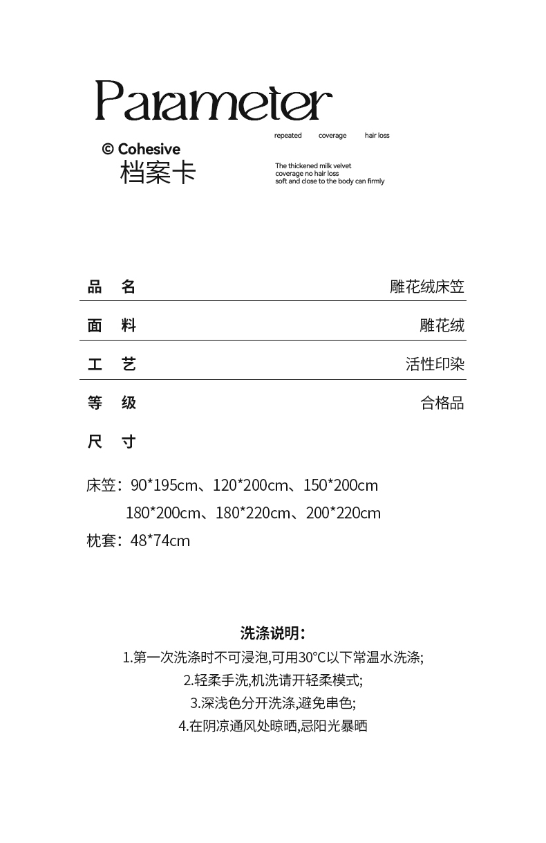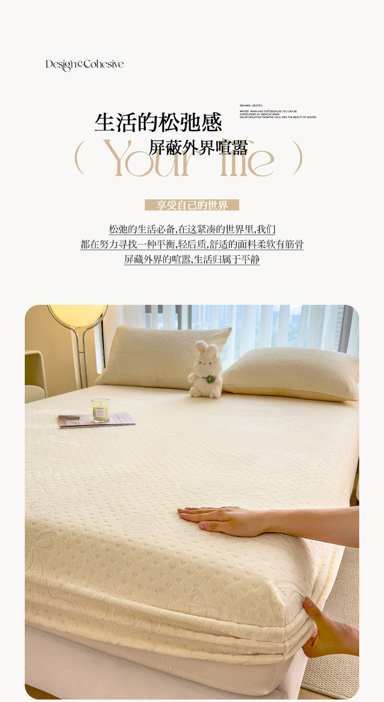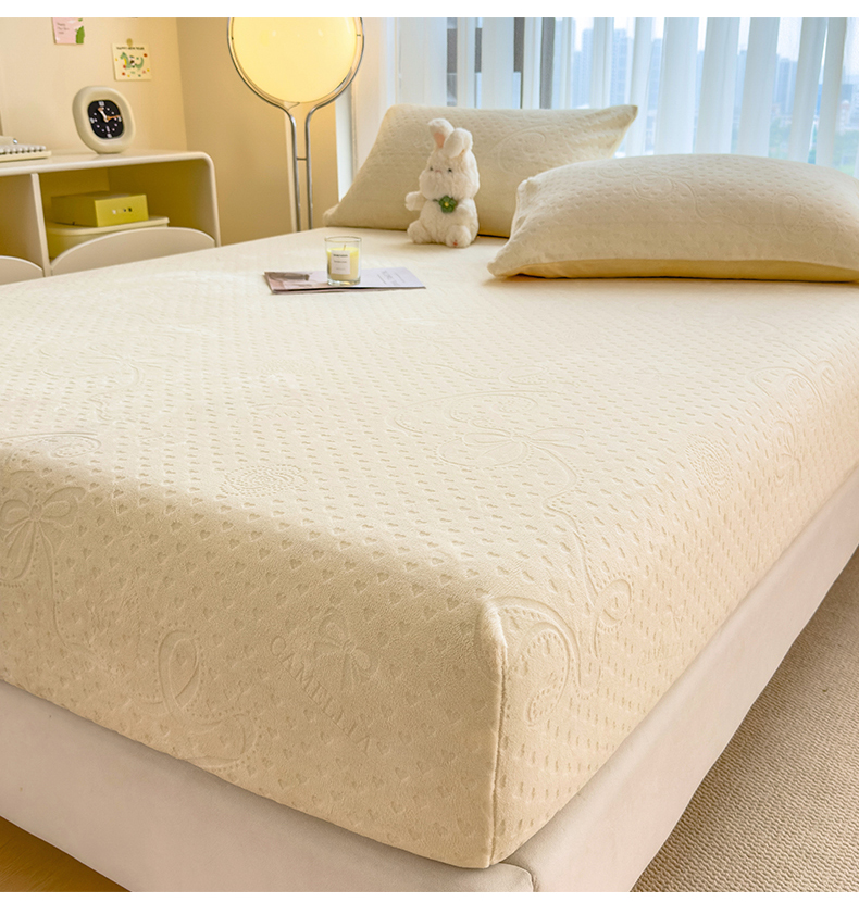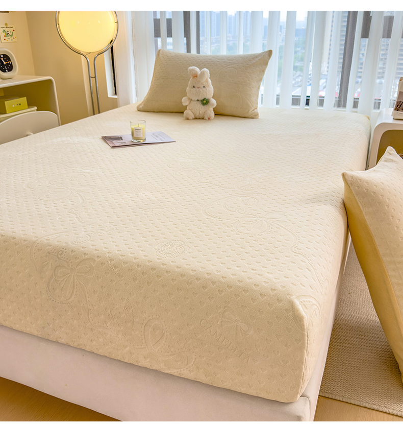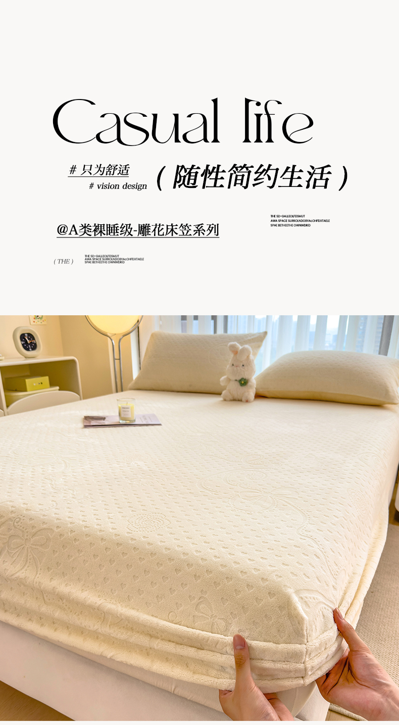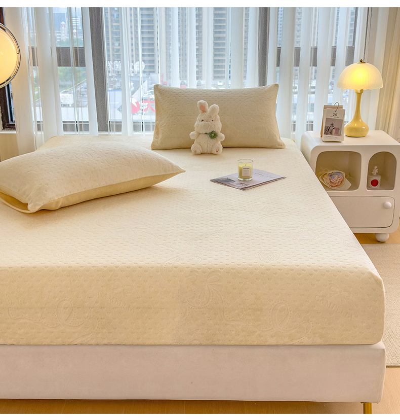 当前位置: 91家纺网 > 商品网购 > 床品套件 > 四件套 > 牛奶绒四件套 > 摩妮卡 2025新款小清新雕花牛奶绒床笠单床笠床笠三件套 叶语白