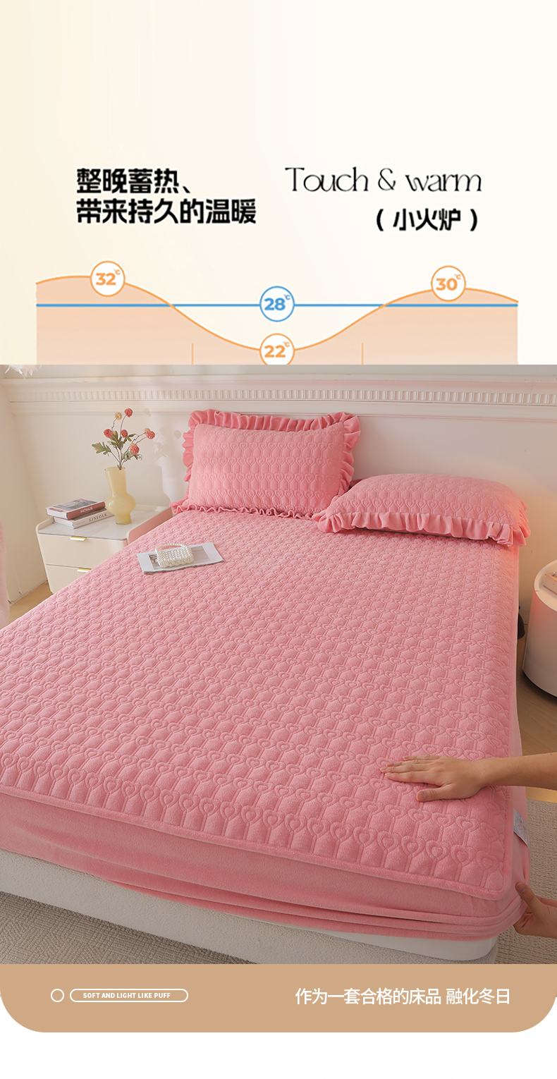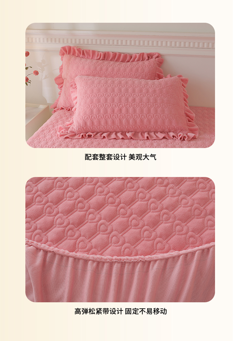 (总)怡源梦 2025新款A类牛奶绒夹棉床笠三件套-甜心公主系列,灰色,咖色,大红色,粉玉色,绿色,米白色,紫色