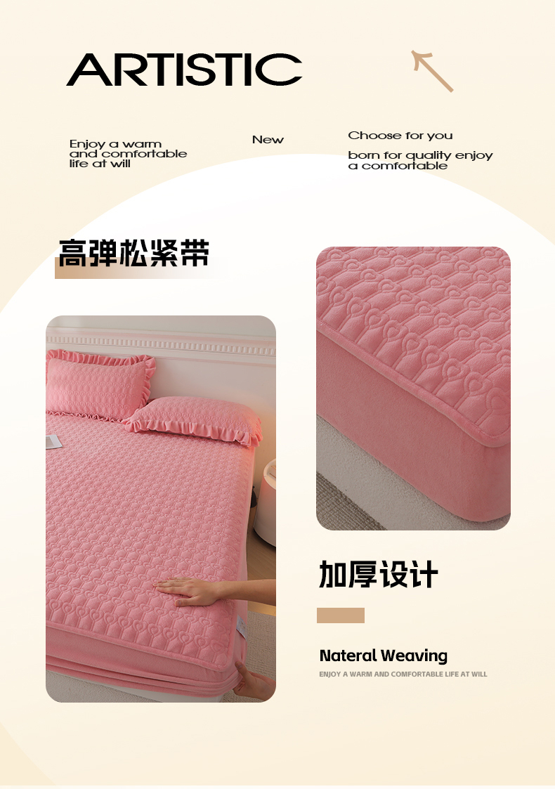• 91家纺网 家纺一手货源 找家纺 怡源梦  2025新款夹棉床笠-甜心公主系列 粉玉色