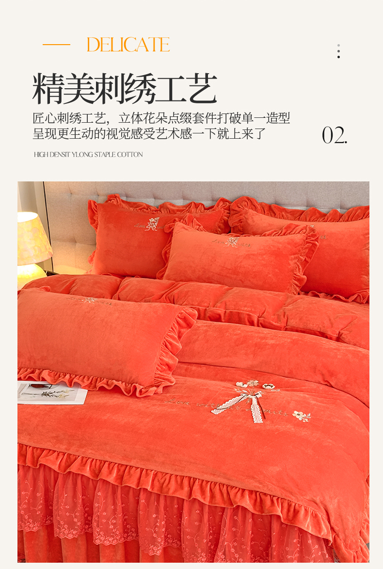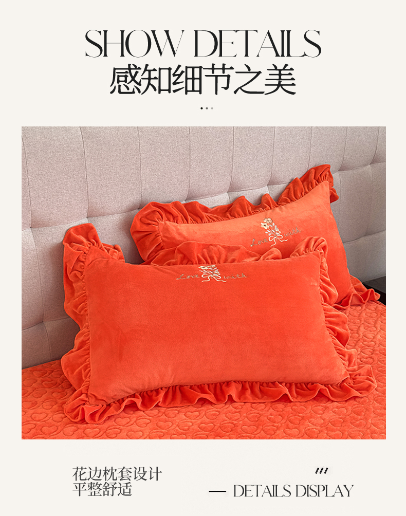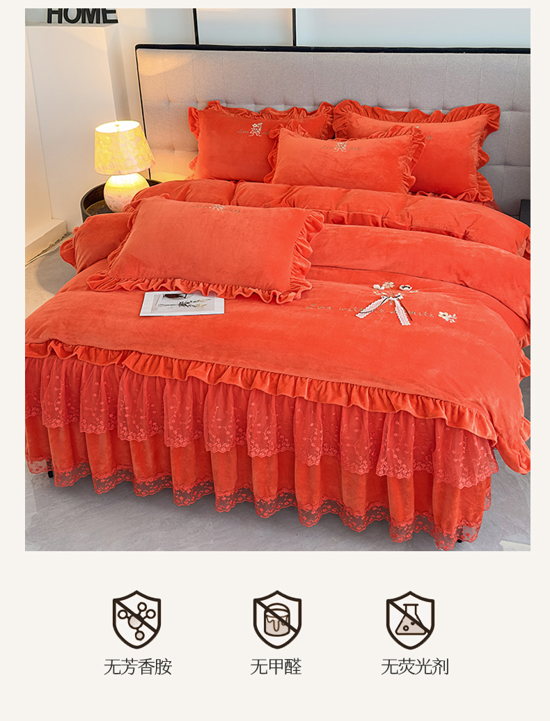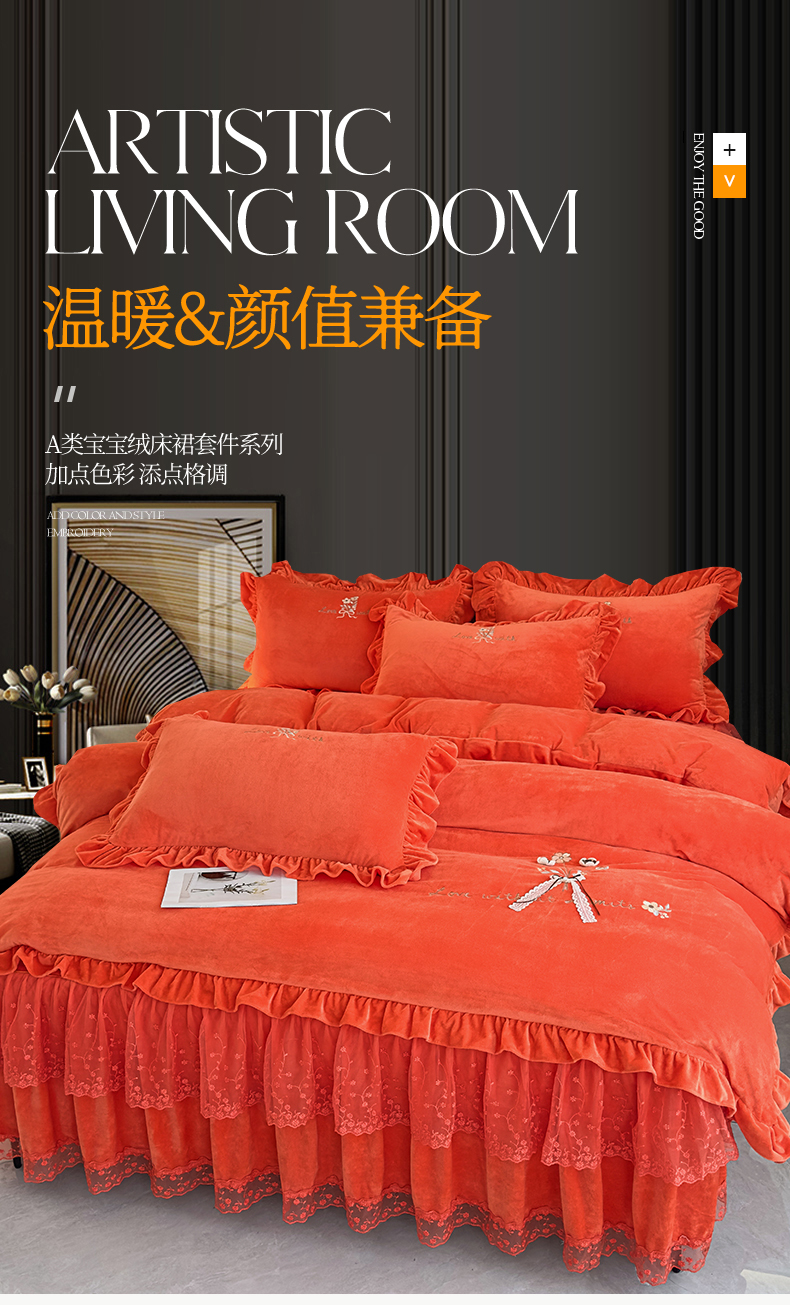 当前位置: 91家纺网 > 商品网购 > 床品套件 > 四件套 > 宝宝绒四件套 > 恒爱家纺 2025新款A类宝宝绒艾薇床裙四件套套件系列 爱玛橙