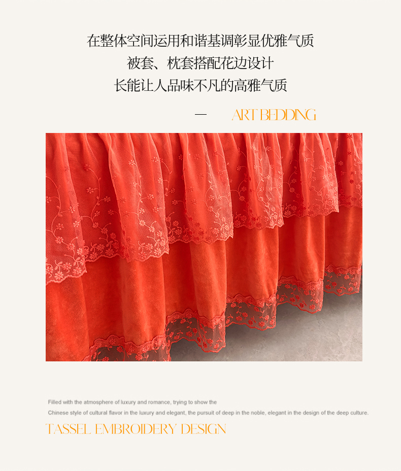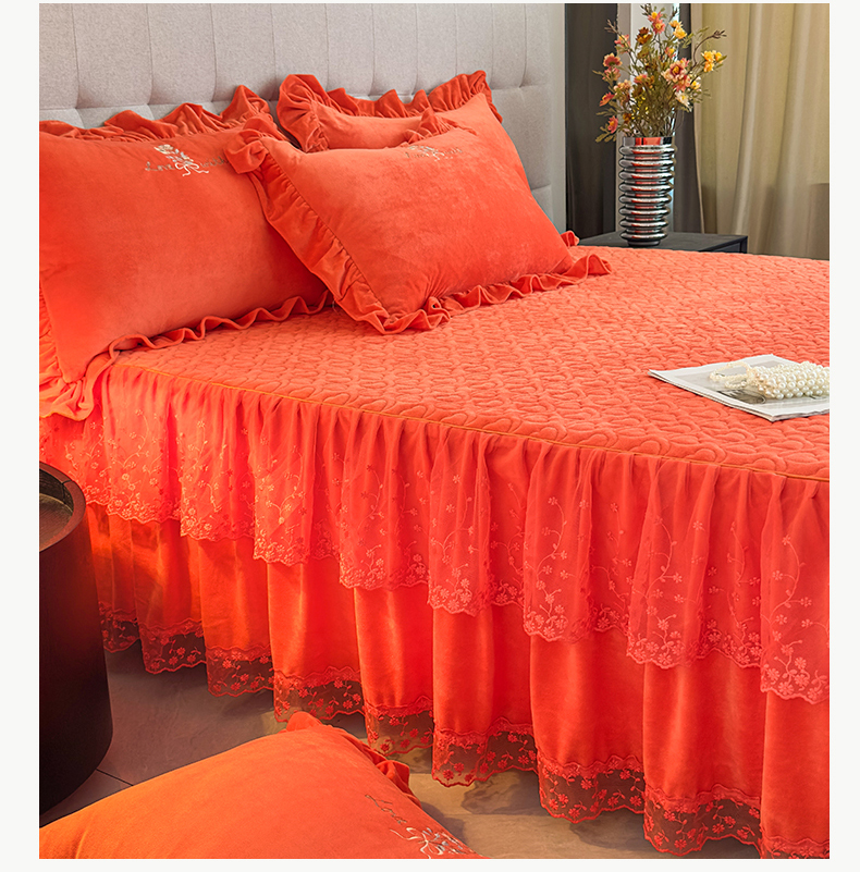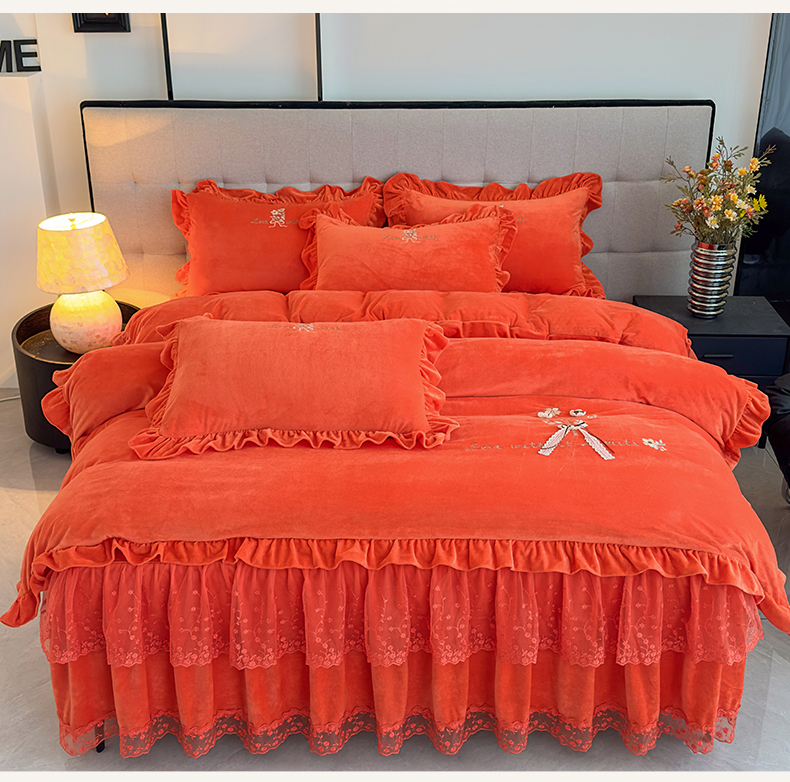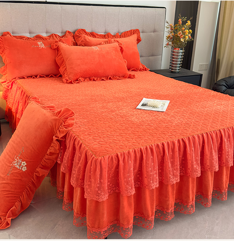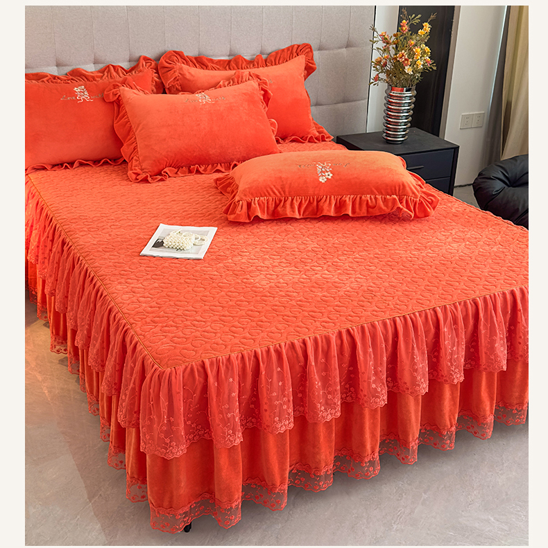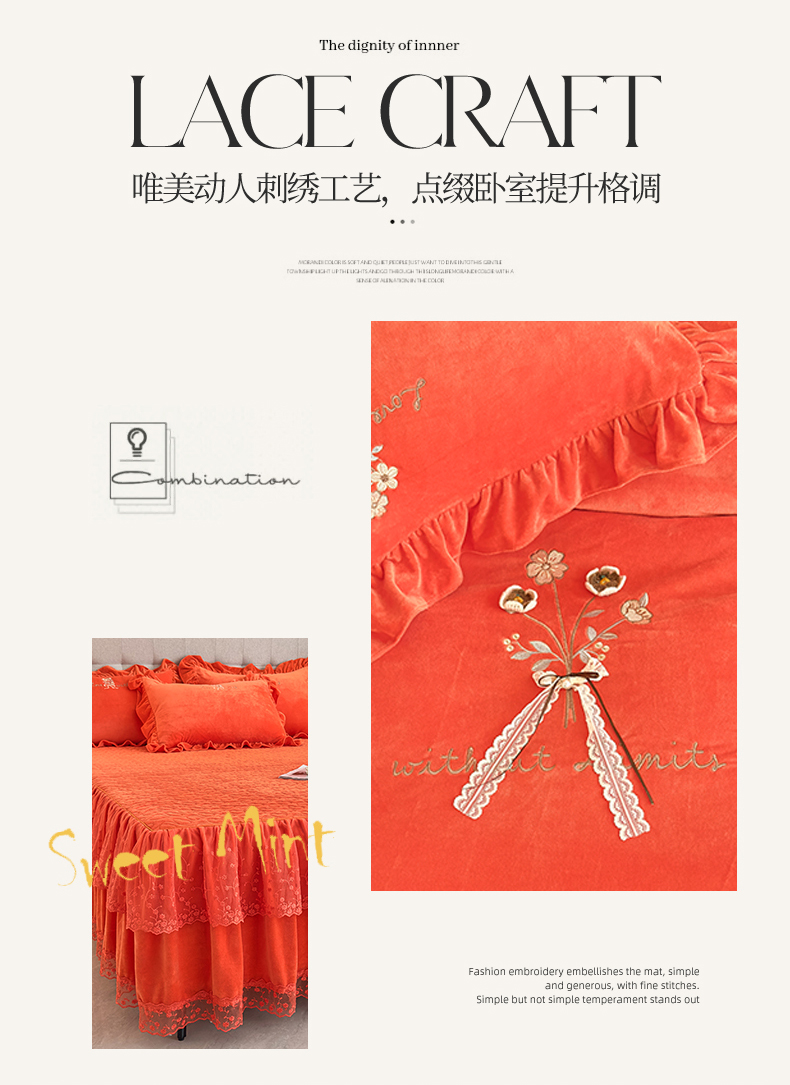 当前位置: 91家纺网 > 商品网购 > 床品套件 > 四件套 > 宝宝绒四件套 > 恒爱家纺 2025新款A类宝宝绒艾薇床裙四件套套件系列 爱玛橙