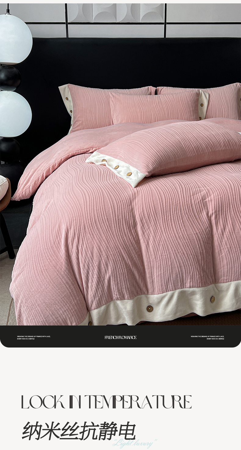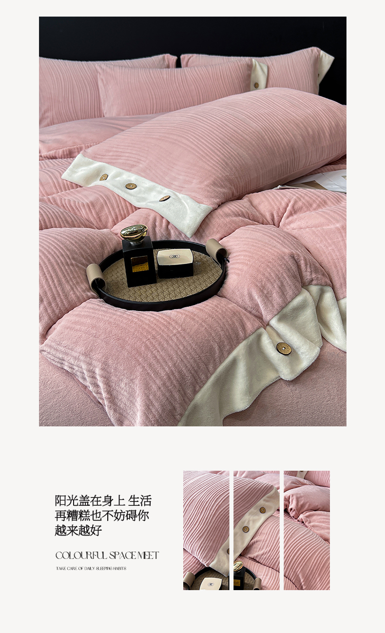 当前位置: 91家纺网 > 商品网购 > 床品套件 > 四件套 > 牛奶绒四件套 > 慕希家纺 2025新款亲肤舒适高克重牛奶绒纽扣款四件套 纽扣款-玫瑰粉