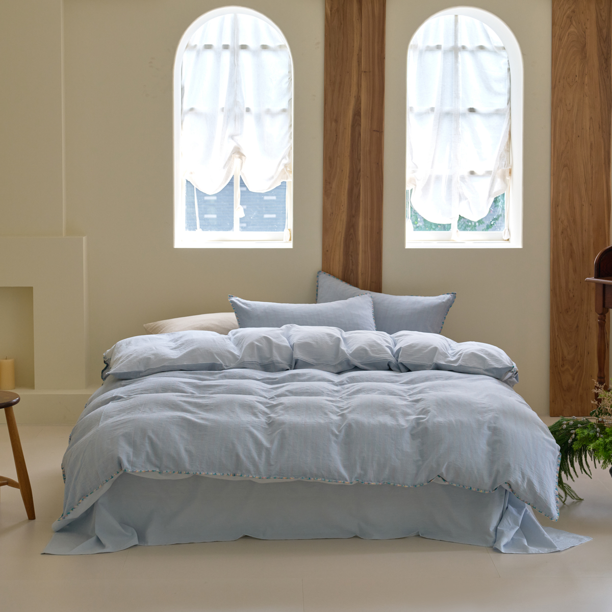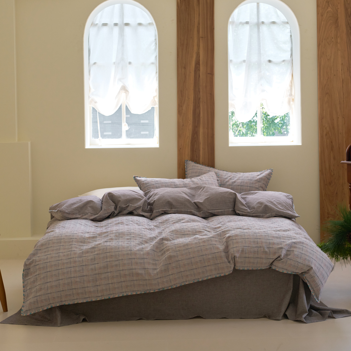 当前位置: 91家纺网 > 商品网购 > 床品套件 > 四件套 > 其它四件套 > 洋铭区(原狠狠爱) 2025新款慕斯VS早安水洗棉彩边色织提花四件套 慕斯深蓝