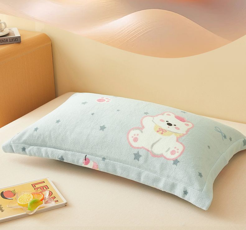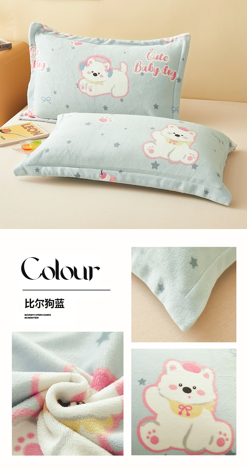 翎盈家纺 2025款加厚高克重牛奶绒枕头套 比尔狗蓝