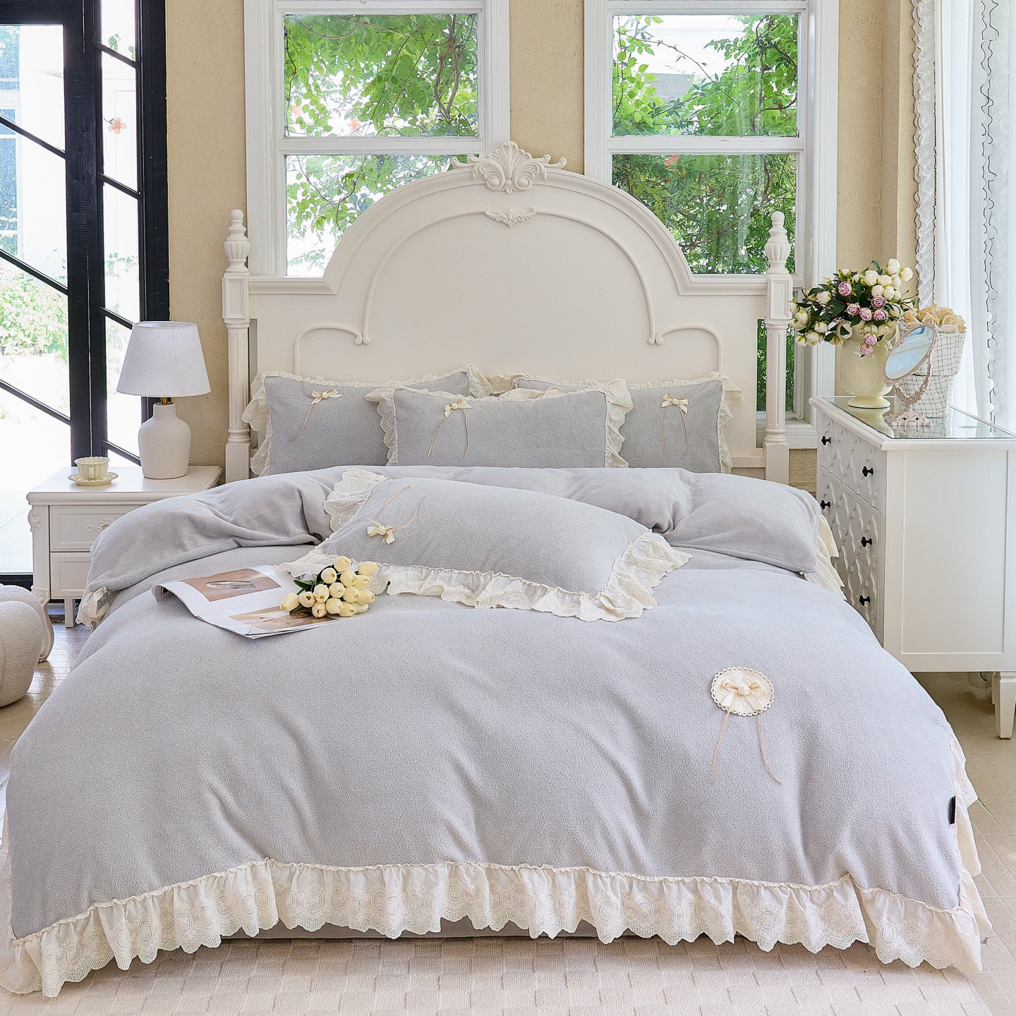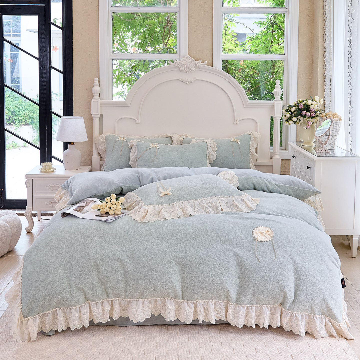 玖玖爱家纺 2025新款高克重法式甜美特软艾尼绒四件套 灰绿
