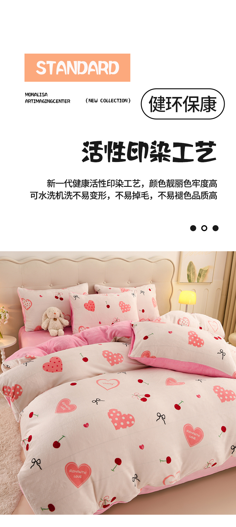 商品名称:紫月轩家纺 2025新款A类牛奶绒小清新印花四件套 甜心喵