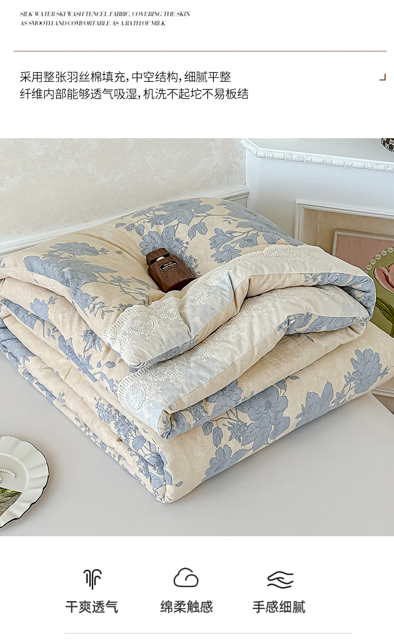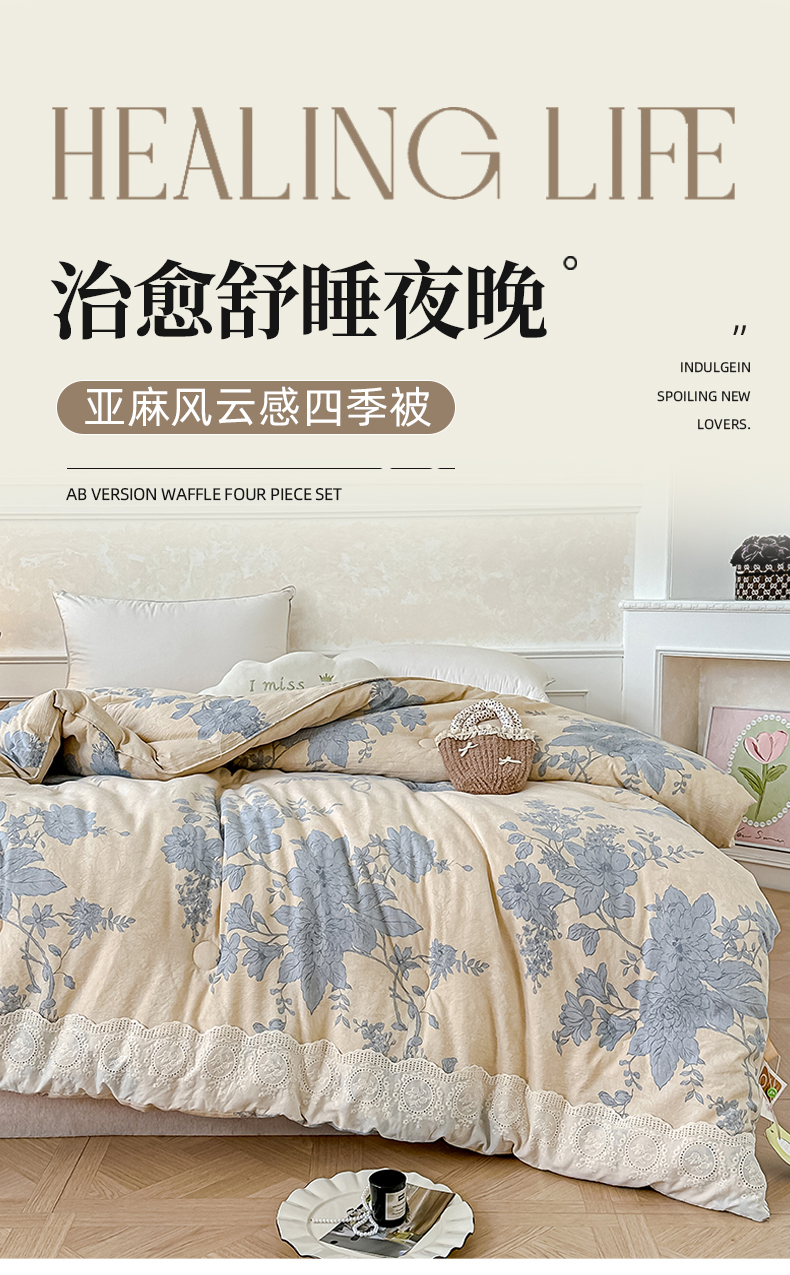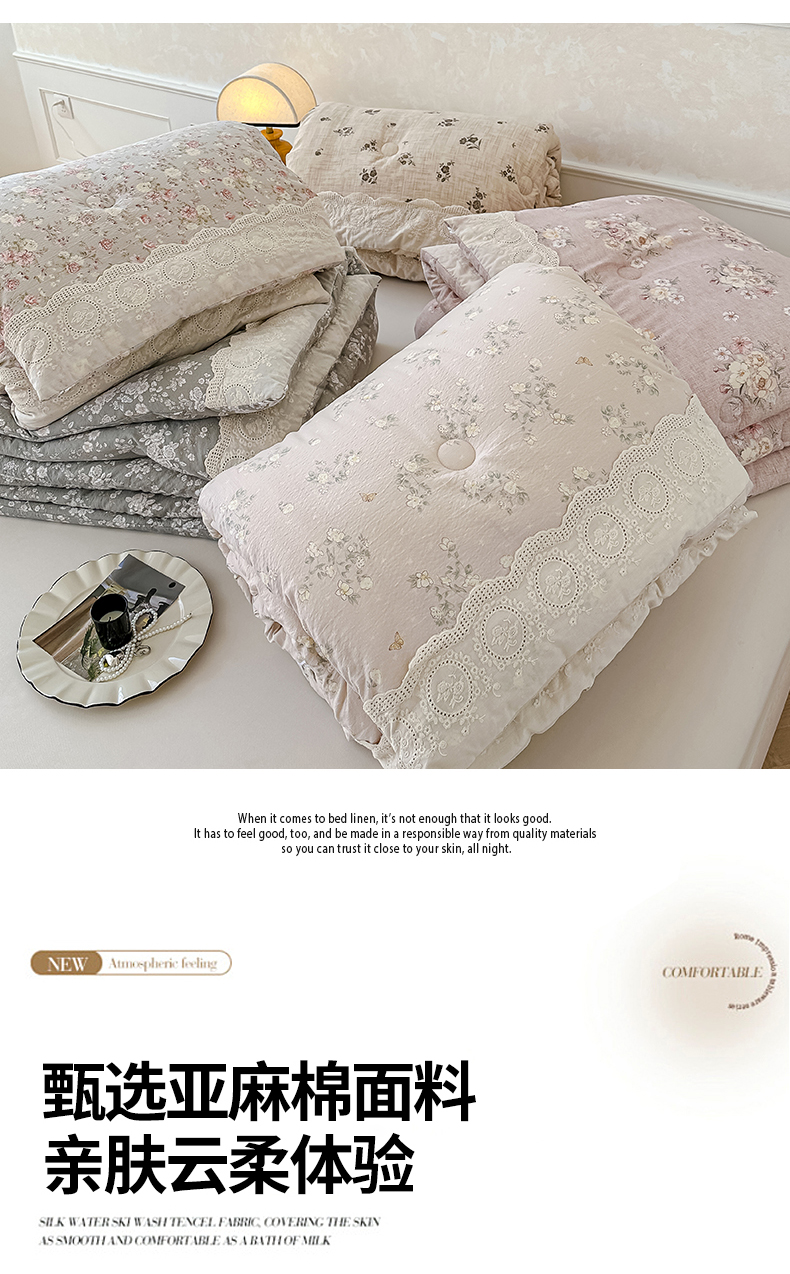 (总)芯恋 25年新款亚麻风全棉花边云感冬被四季被加厚冬被,苍兰,瑰丽,花弄影,花影,蒹葭,落霞,晚秋,云清