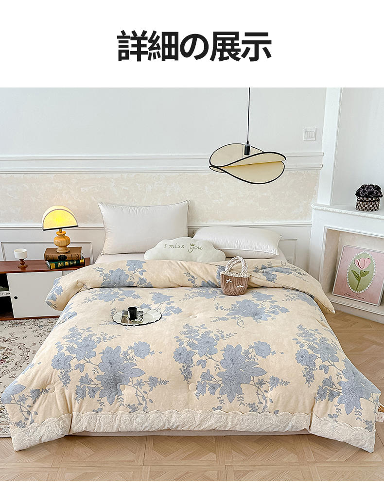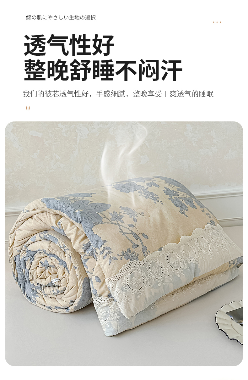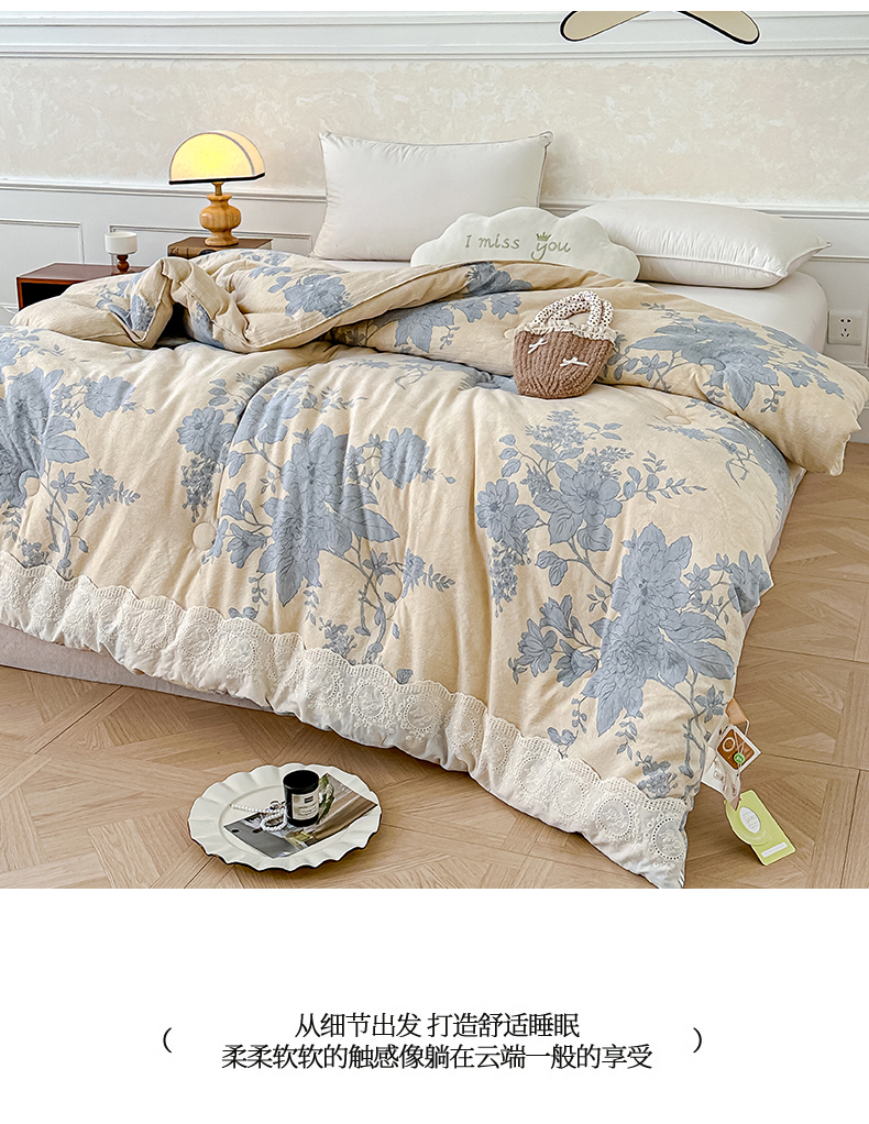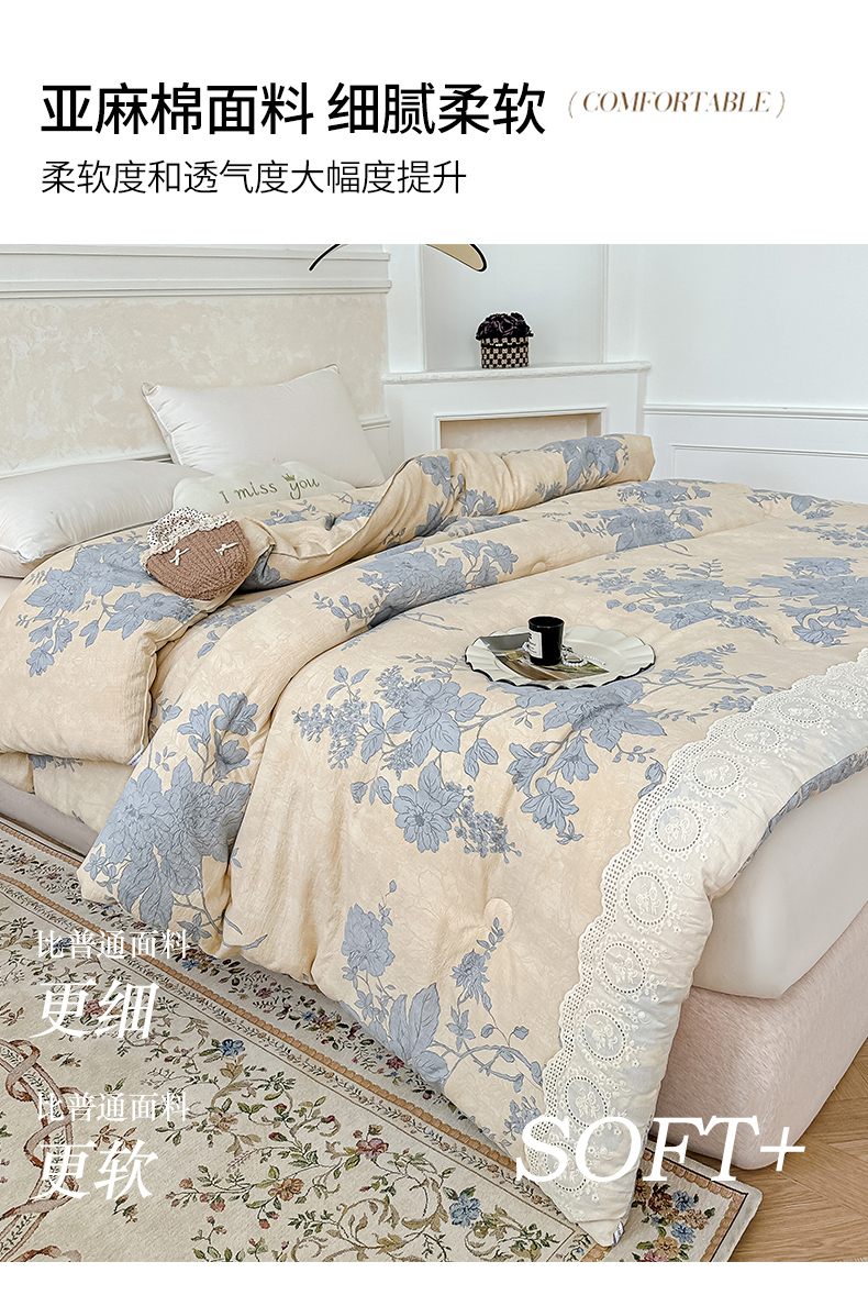 商品名称:(总)芯恋 25年新款亚麻风全棉花边云感冬被四季被加厚冬被