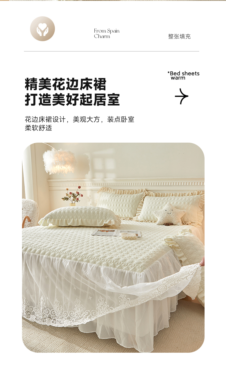 (总)怡源梦 2025新款A类牛奶绒夹棉床裙单件-甜心公主系列,米白色,大红色,粉玉色,灰色,咖色,绿色,紫色
