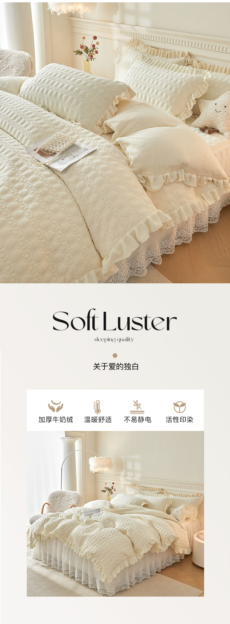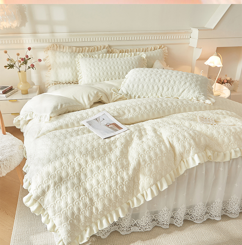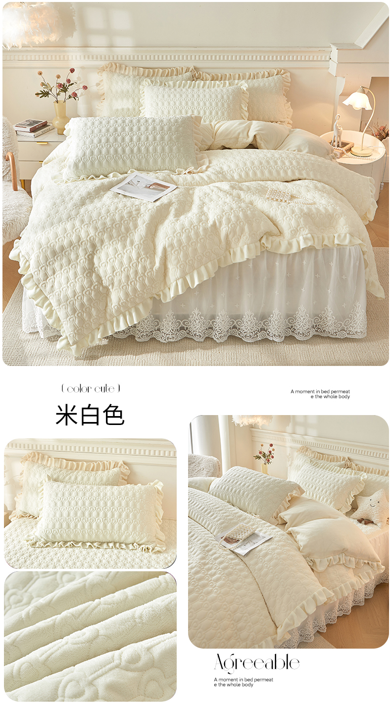 怡源梦 2025新款牛奶绒床裙四件套-甜心公主系列 米白色