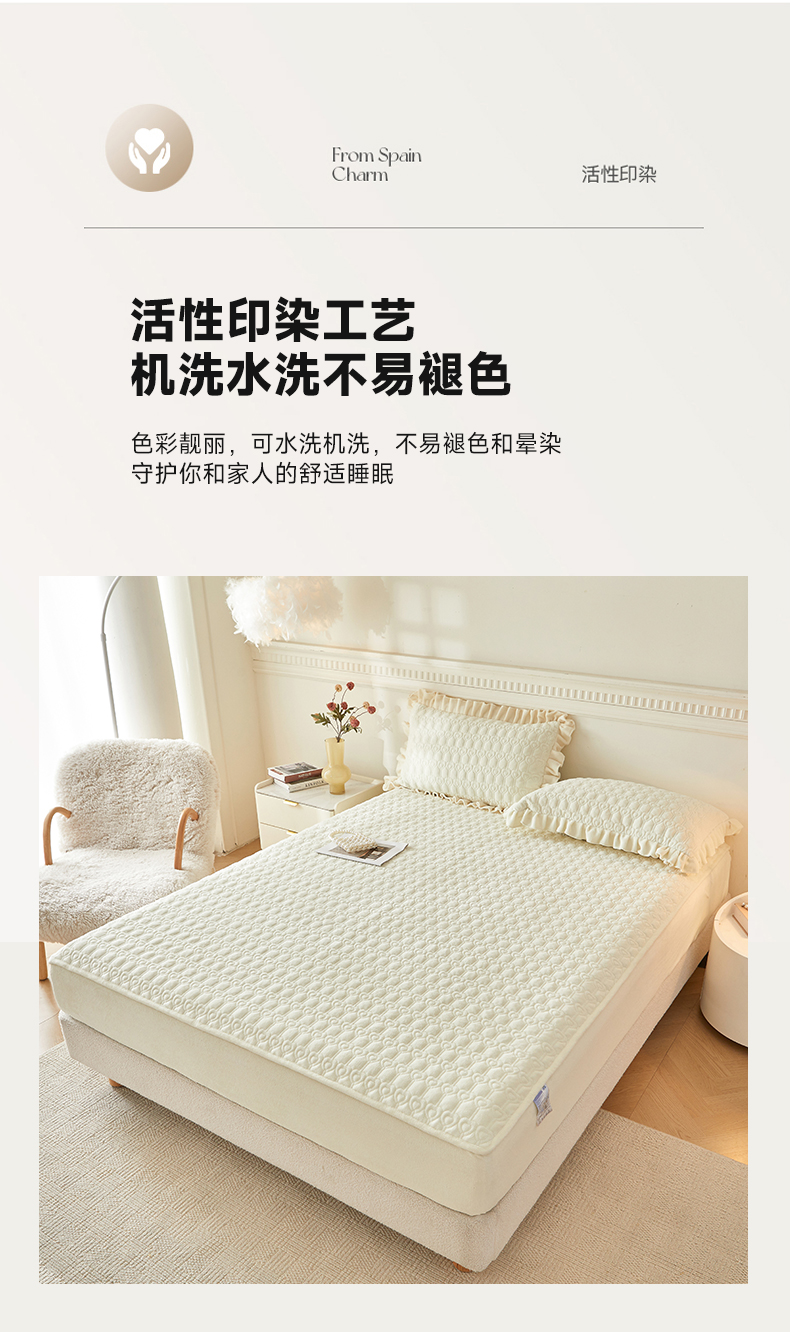 (总)怡源梦 2025新款夹棉床笠-甜心公主系列,大红色,粉玉色,灰色,咖色,绿色,米白色,紫色