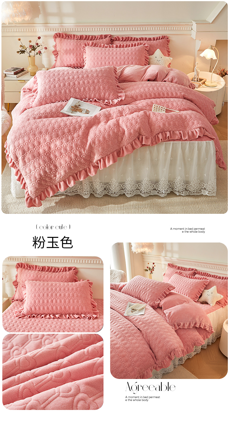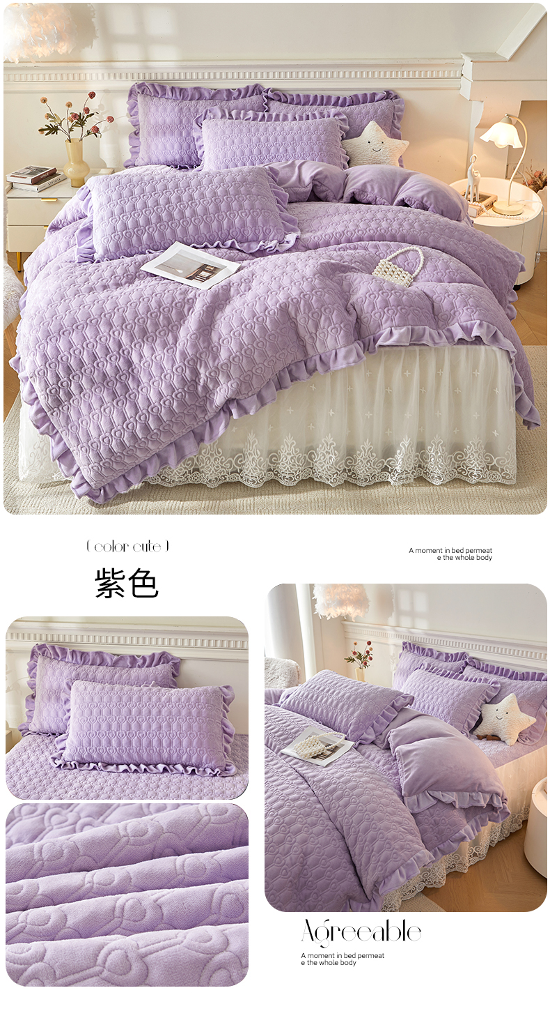 (总)怡源梦 2025新款牛奶绒床裙四件套-甜心公主系列,米白色,大红色,粉玉色,灰色,咖色,绿色,紫色