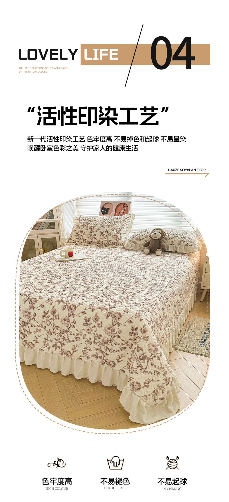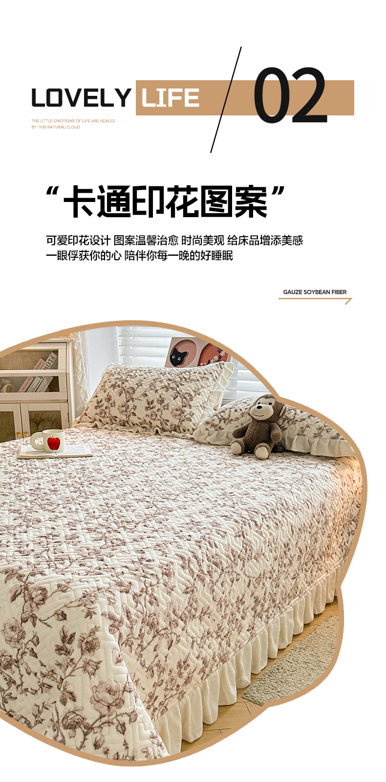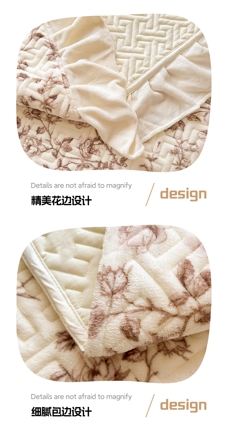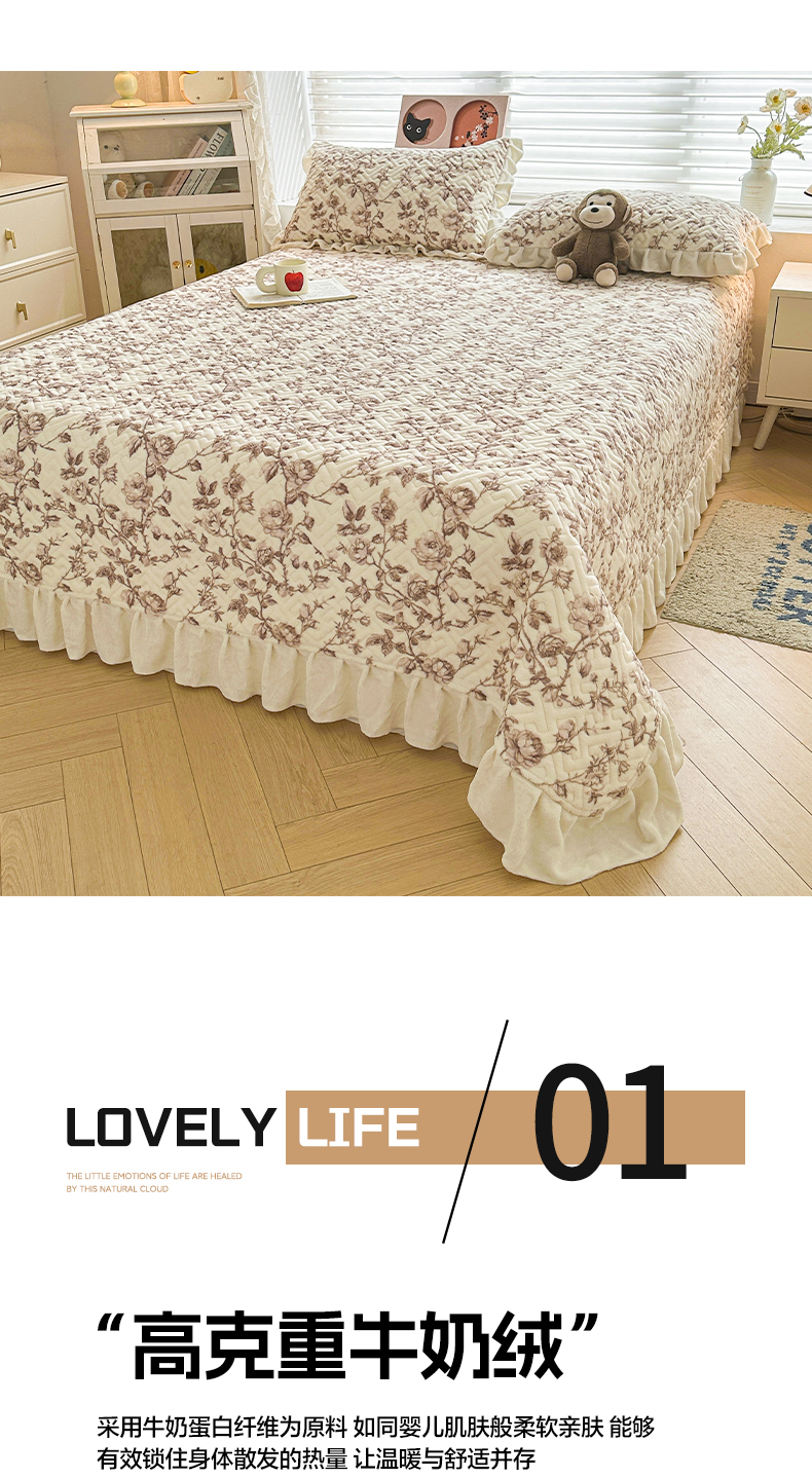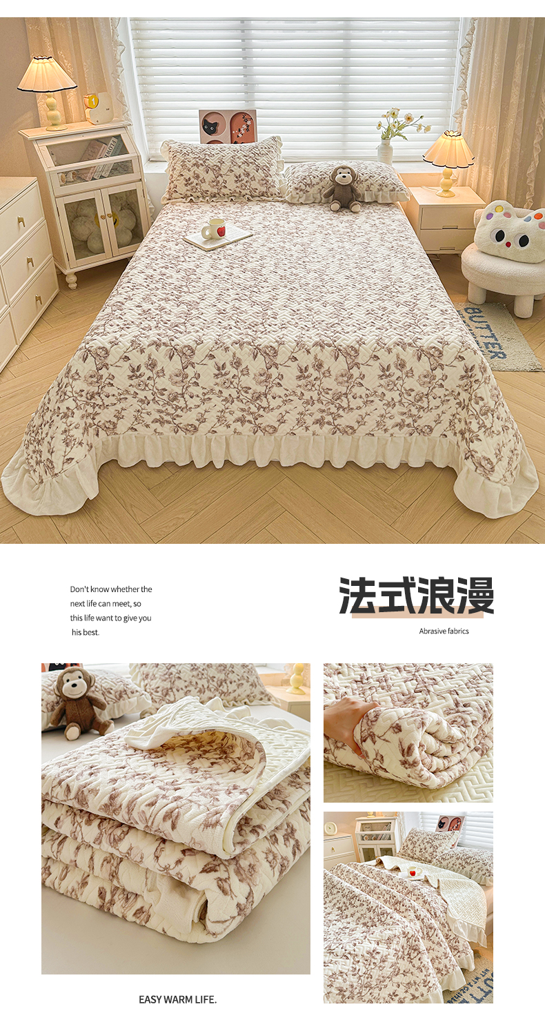 商品名称:凯罗 2025新款牛奶绒花边床盖印花小清新盖毯加大牛奶绒床盖床单 法式浪漫