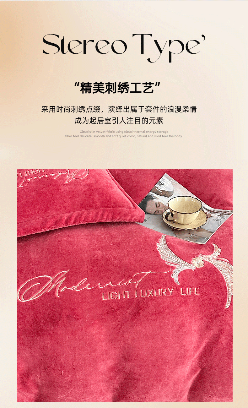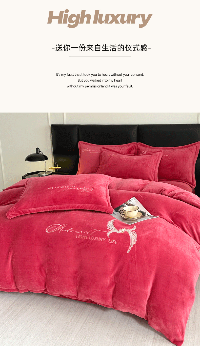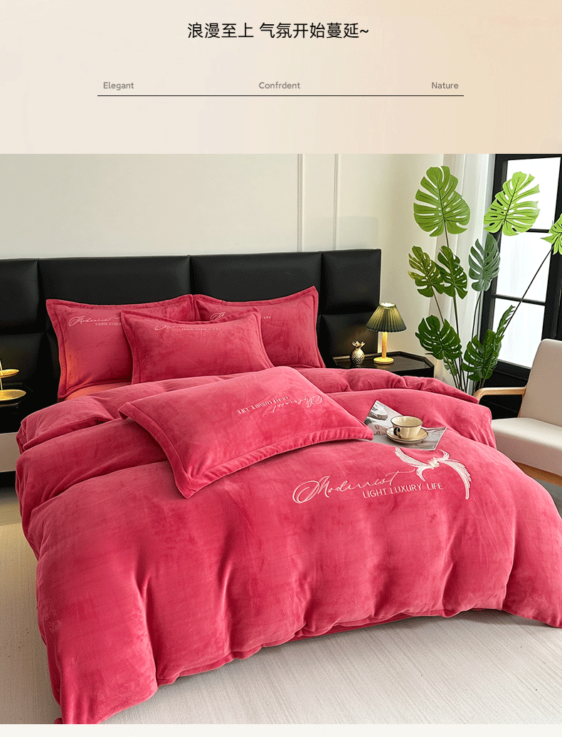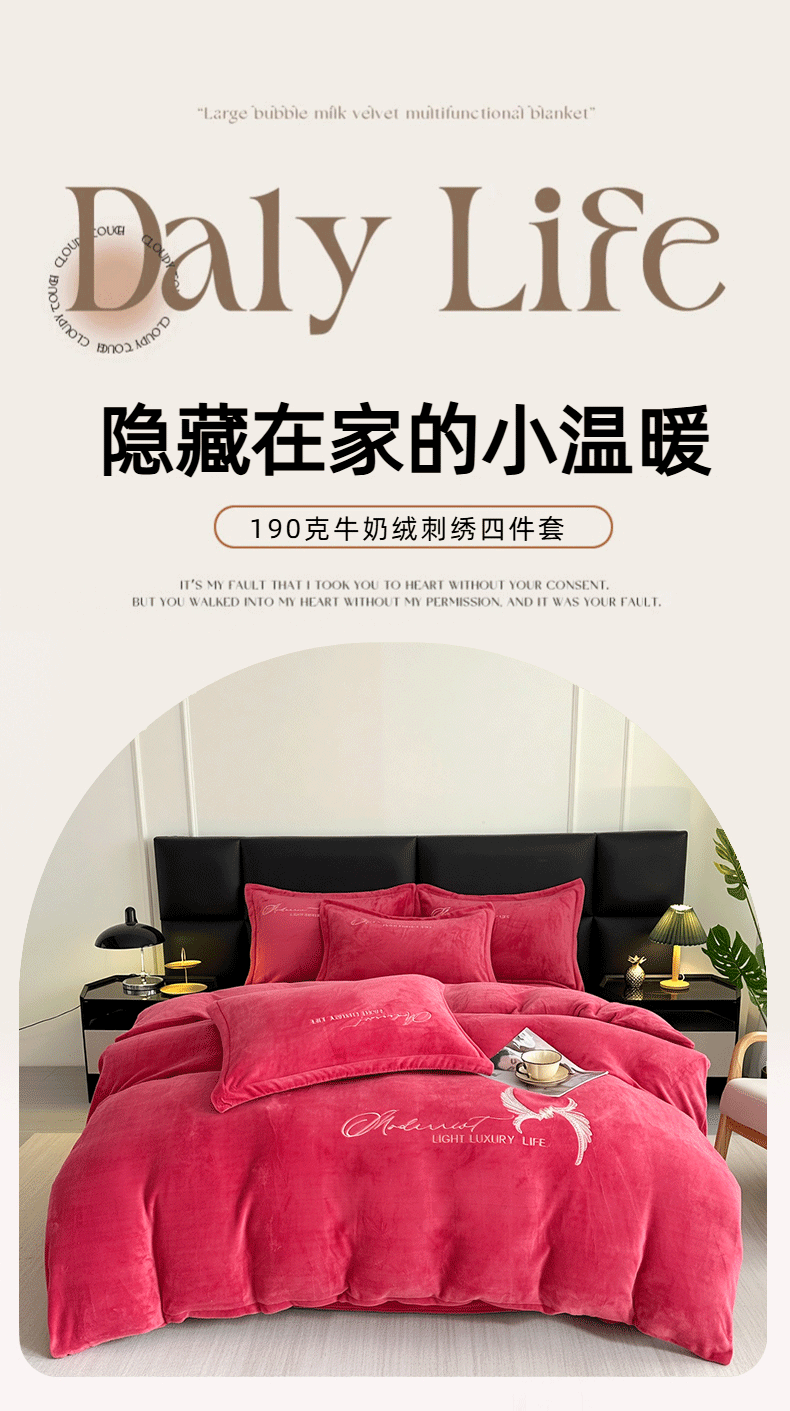商品名称:悦织湾家纺 2025新款牛奶绒纯色刺绣四件套-宽镜 宽镜-豆沙