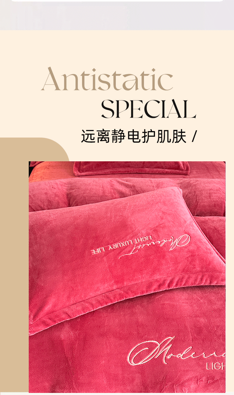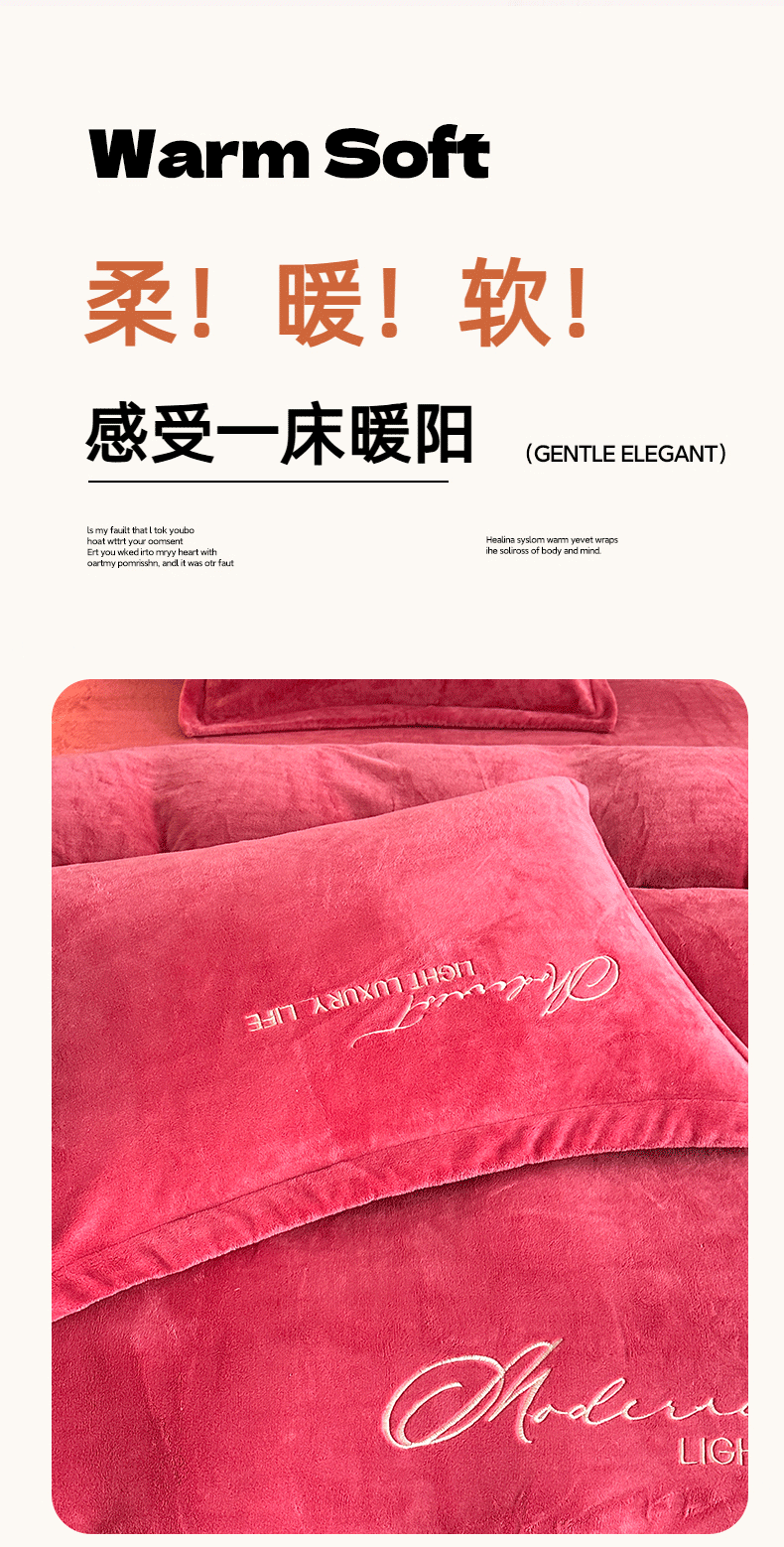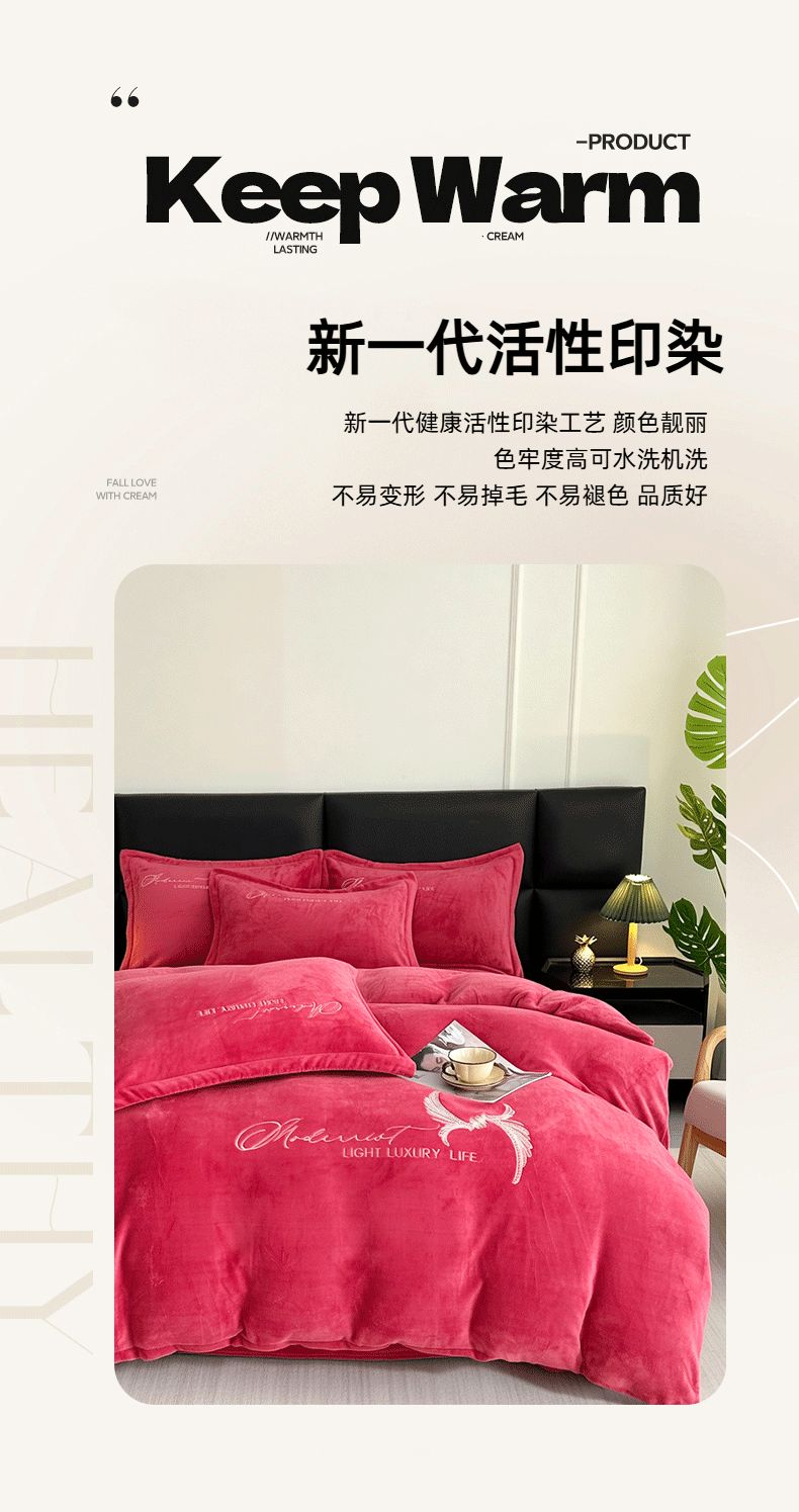 商品名称:悦织湾家纺 2025新款牛奶绒纯色刺绣四件套-宽镜 宽镜-豆沙