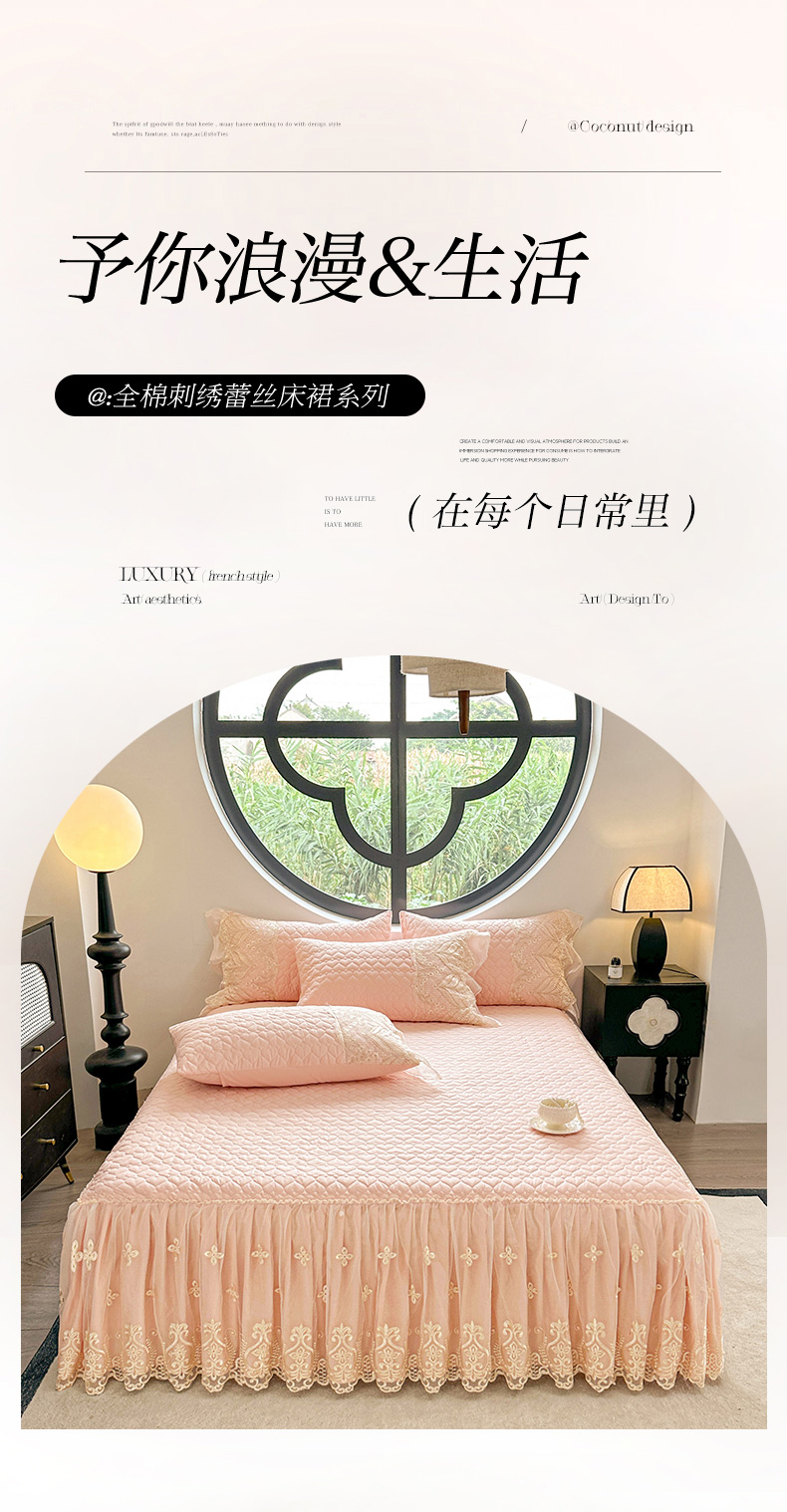 床上用品 > 床裙 > 罗艺轩 2025新款全棉纯棉蕾丝刺绣琉璃单床裙床裙单件(1.5m控价135起、1.8m控价140起、1.8*2.2m控价145起、2.0m控价150起) 琉璃-玉