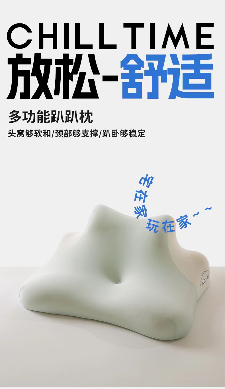 (总)其乐枕芯 2025新款多功能慢回弹牛奶绒趴睡枕趴趴枕记忆棉枕头,天空蓝拼白色,魅惑紫拼白色,青草绿拼白色,清新绿拼白色,深灰色拼白色