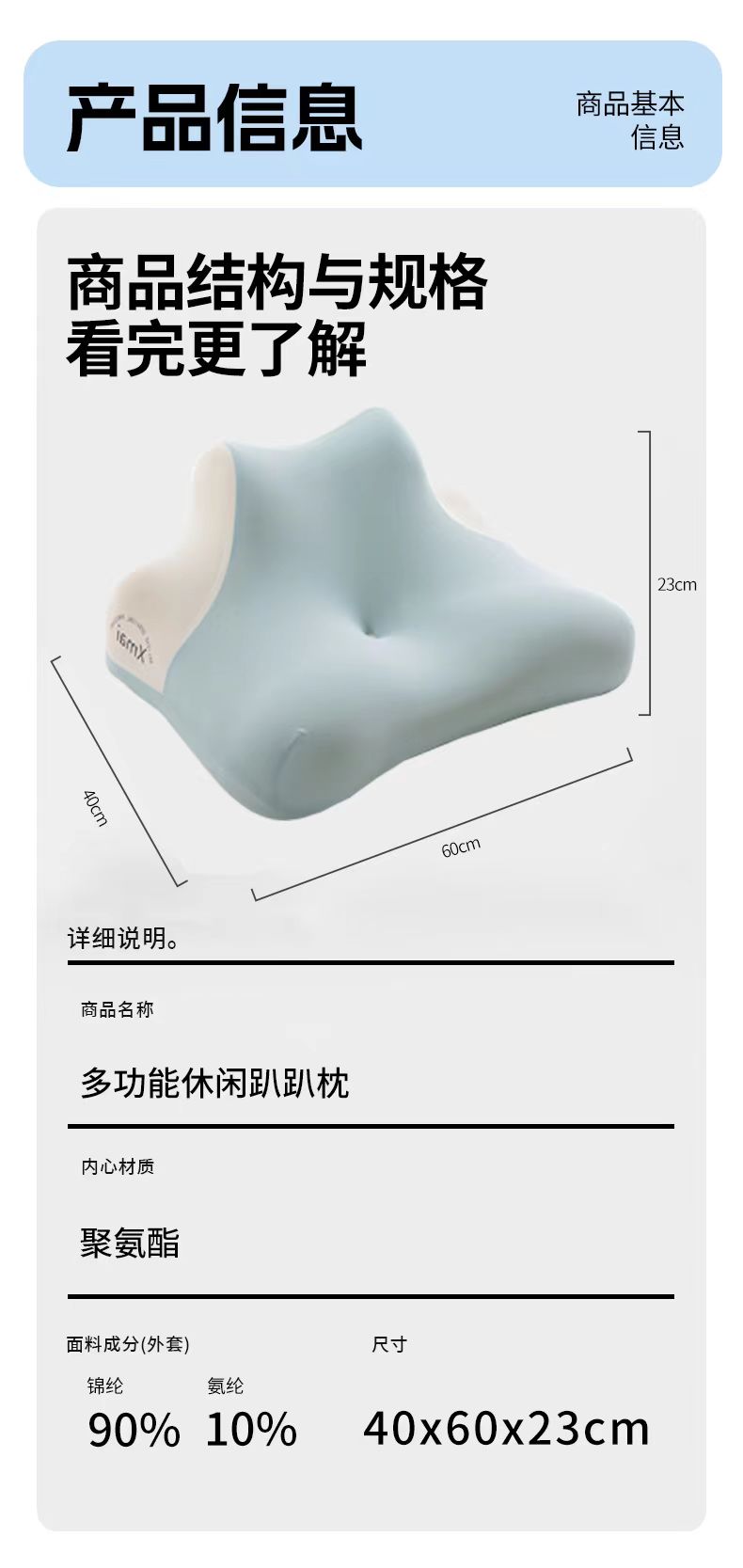 商品名称:其乐枕芯 2025新款多功能慢回弹趴睡枕趴趴枕记忆棉枕头枕芯 银雪灰