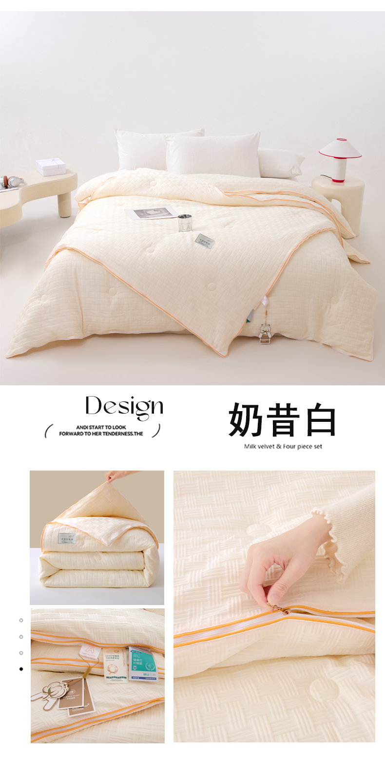 (总)VIP被业 2025新款高克重加绒加厚牛奶绒冬被拼接设计被子被芯,白灰,灰色,蓝灰,米蓝,米粉