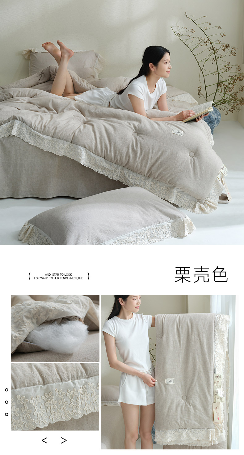 (总)桂雅居 2025新款舒适麻棉麻数码印花蕾丝花边懒人被被子被芯,时雨灰,栗壳色,烟墨灰,麻本色,素锦咖,映雪咖,组合