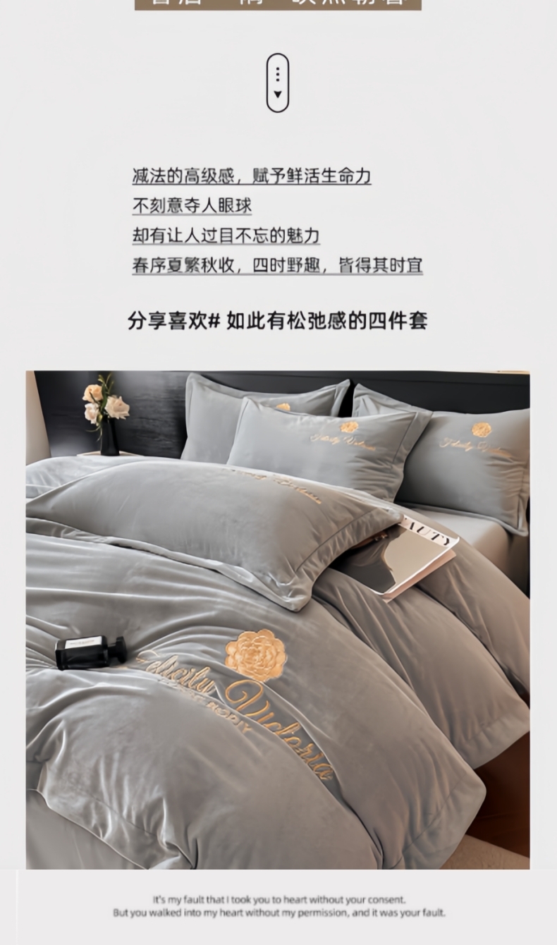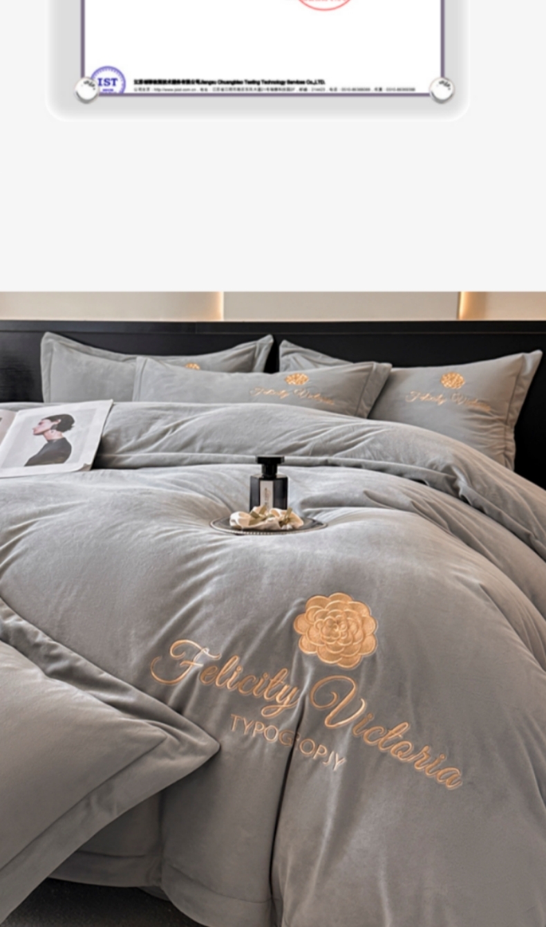(总)鸿织源家纺 2025新款230g全消光牛奶绒刺绣四件套,宾利蓝,伯爵玉,罗兰灰,奶昔白,赛琳绿,相思咖,豆沙,摩卡棕