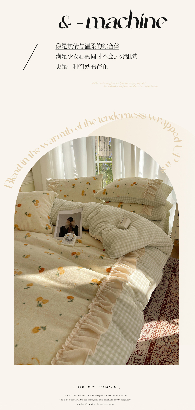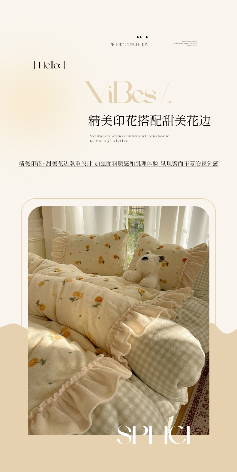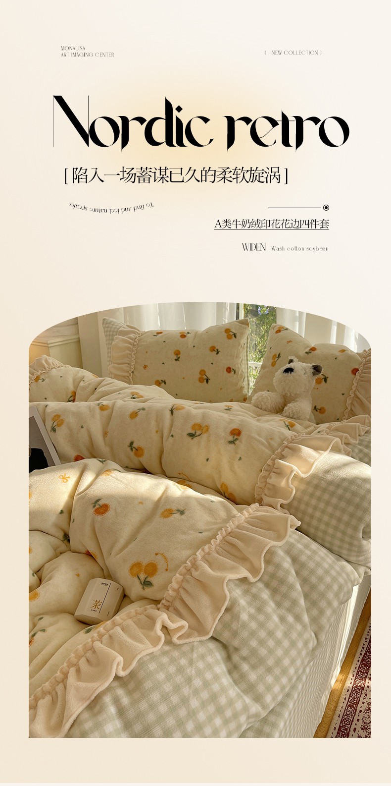 商品名称:瑞莱 (持续上新)2025冬季新款拼接款花边牛奶绒四件套 奶油樱桃