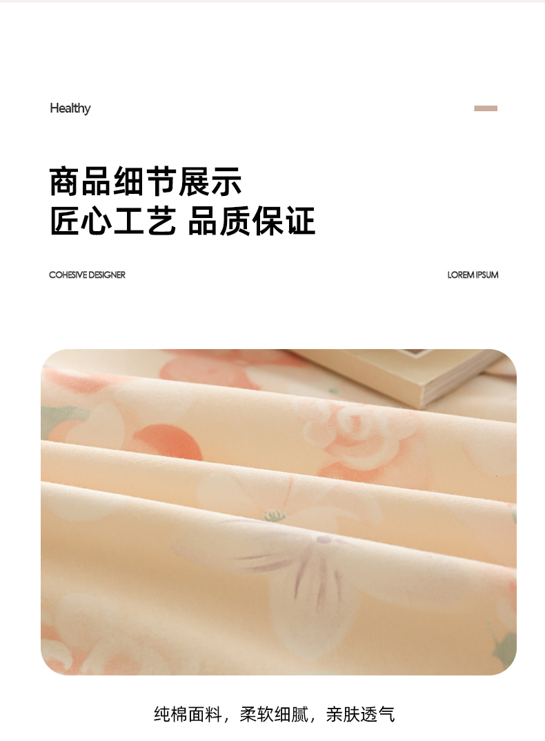 (总)简宜家居(朝初家纺) 2026新款13070全棉纯棉40支斜纹蕾丝四件套,初朵,粉桃小花,含苞蔷薇,花田小兔,橘果团子,蓝调花册,奶白萄笺,青柠果络