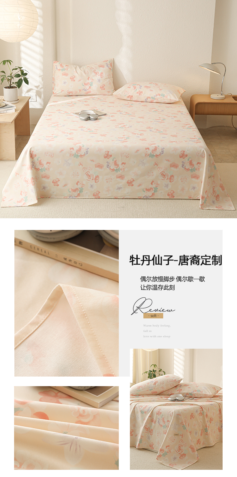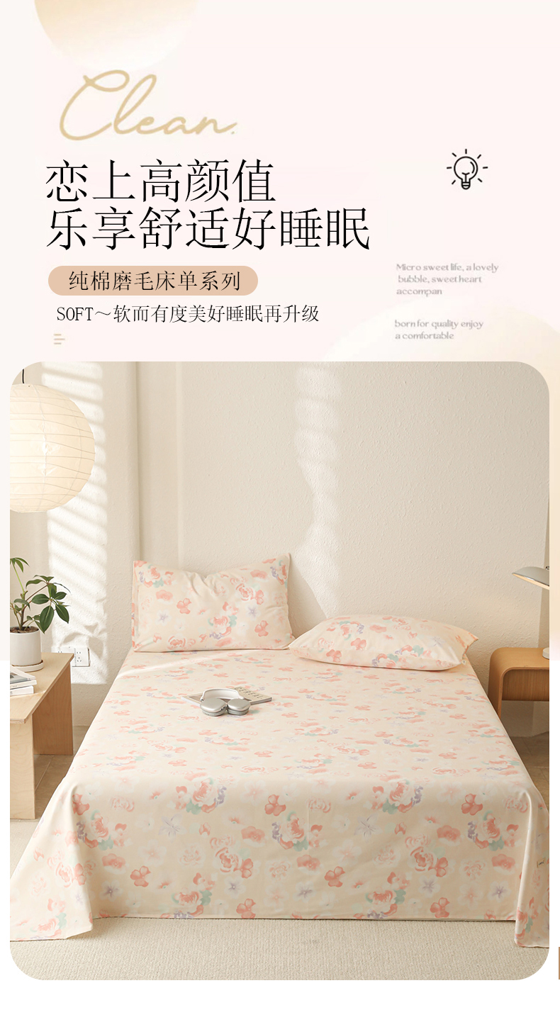 简宜家居(朝初家纺) 2025新款纯棉全棉磨毛单床单系列 牡丹仙子