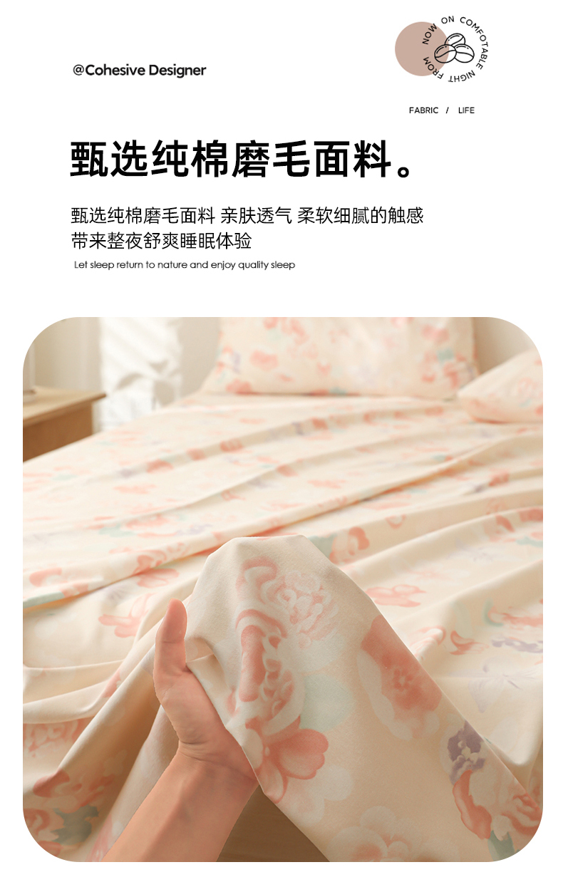 • 91家纺网 家纺一手货源 找家纺 简宜家居(朝初家纺) 2025新款纯棉全棉磨毛单床单系列 牡丹仙子