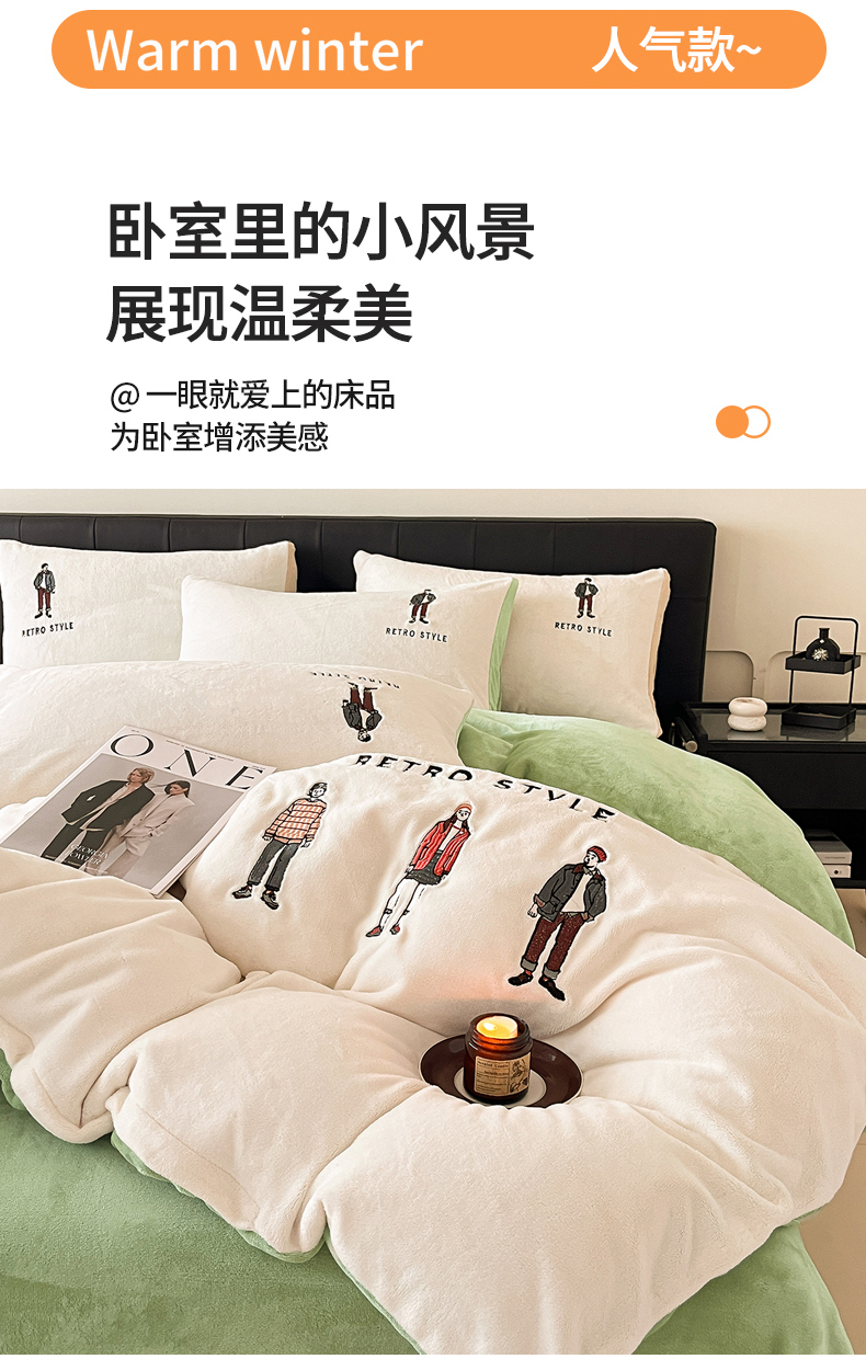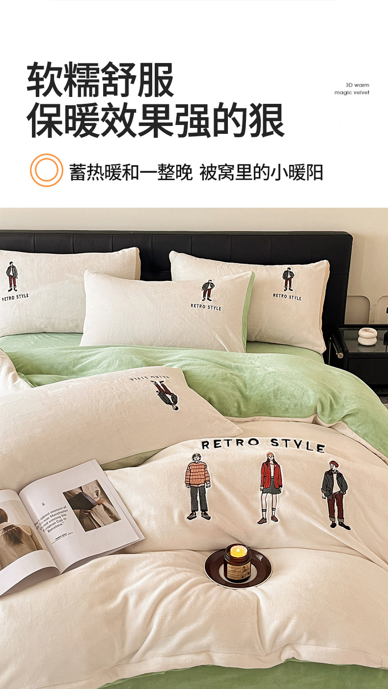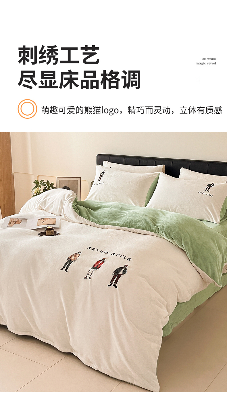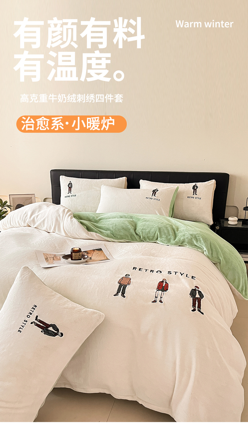 当前位置: 91家纺网 > 商品网购 > 床品套件 > 四件套 > 牛奶绒四件套 > ONE TWO ONE 121 新品【牛奶绒刺绣四件套】2025毛毯被子四件套单件床单被套床笠珊瑚绒牛奶绒冬被法兰绒兔毛绒男孩Boy Boy-浅绿