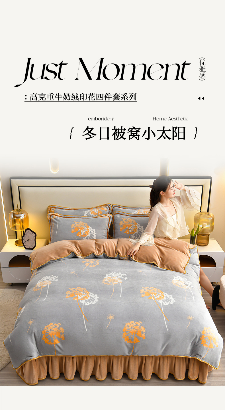 (总)橘姿 2025新款8-9斤床裙款牛奶绒四件套金貂绒法兰绒宝宝绒,蝶舞花香,芳颜,荷塘月色,简约时尚,静若幽香,乐薇花园,玫瑰情缘,鹿之恋,天生一对,邂逅,心相印,一鹿有你,时尚潮流,银杏叶语,爱恋粉,爱情花语,爱语,爱之依恋,百合情缘,发财树,富贵牡丹,花香怡人,花样情怀,花语,欢乐兔,蓝大格,浪漫甜心,暖意,青花瓷韵,情人草灰,深林麋鹿,时尚豹纹,时尚小熊,相爱一生大红,心动萌宝,幸运树,叶叶枫情,一叶倾心,英伦时尚,在一起