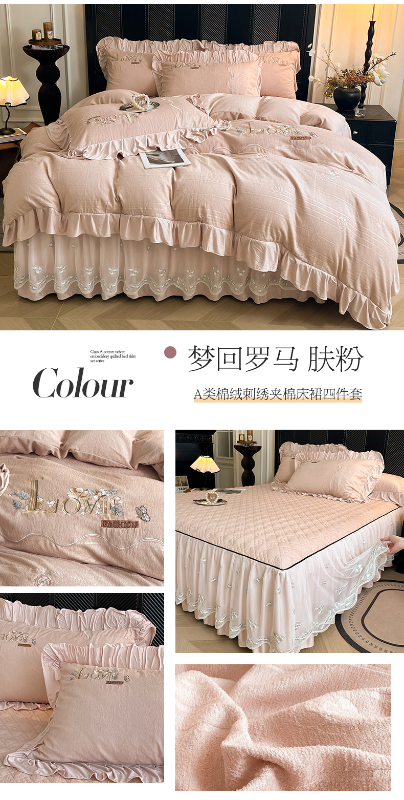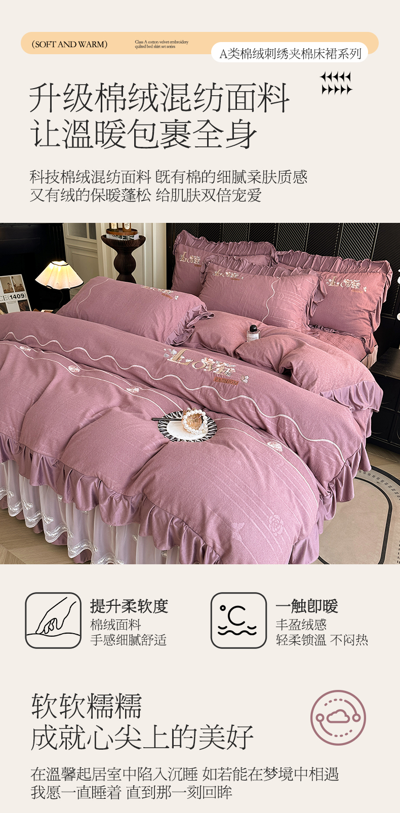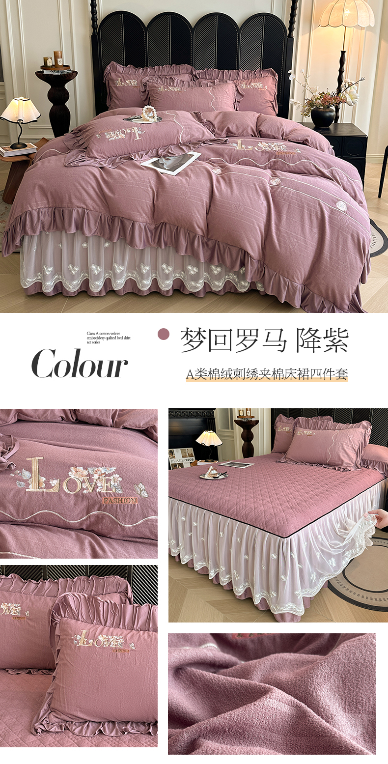 宜凡家纺 2025新款A类棉绒刺绣花夹棉床裙四件套--梦回罗马系列 梦回罗马 降紫