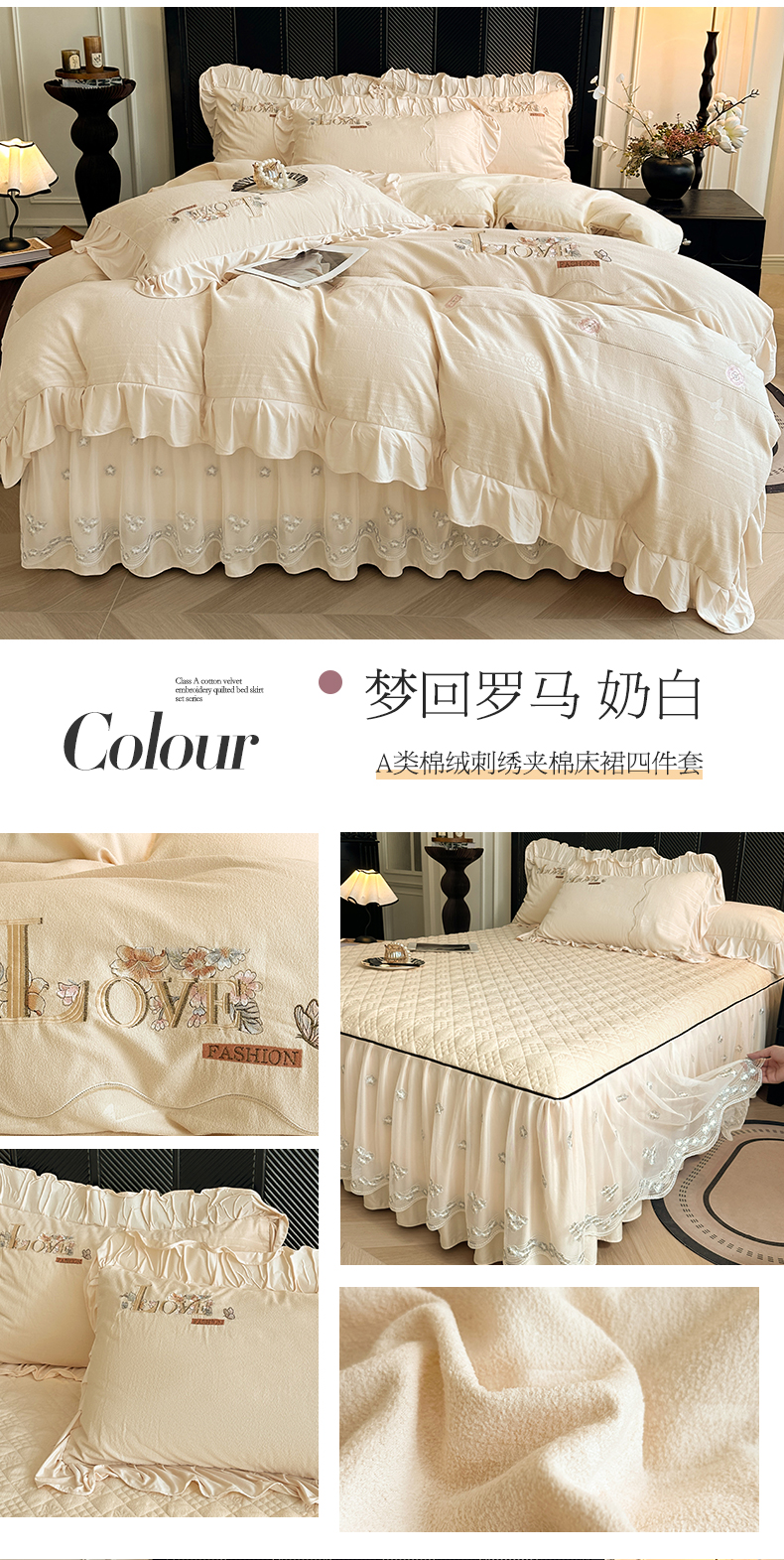 商品名称:宜凡家纺 2025新款A类棉绒刺绣花夹棉床裙四件套--梦回罗马系列 梦回罗马 降紫