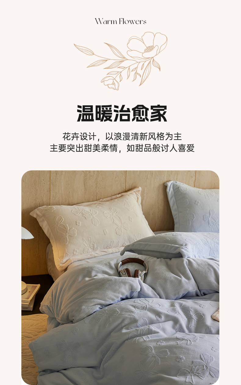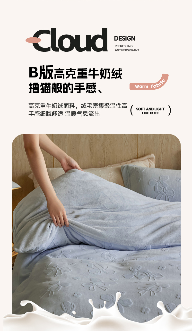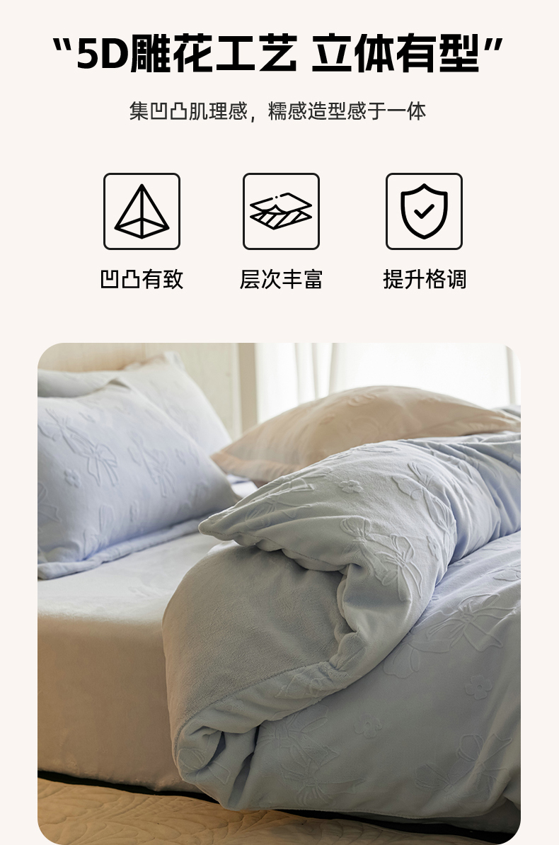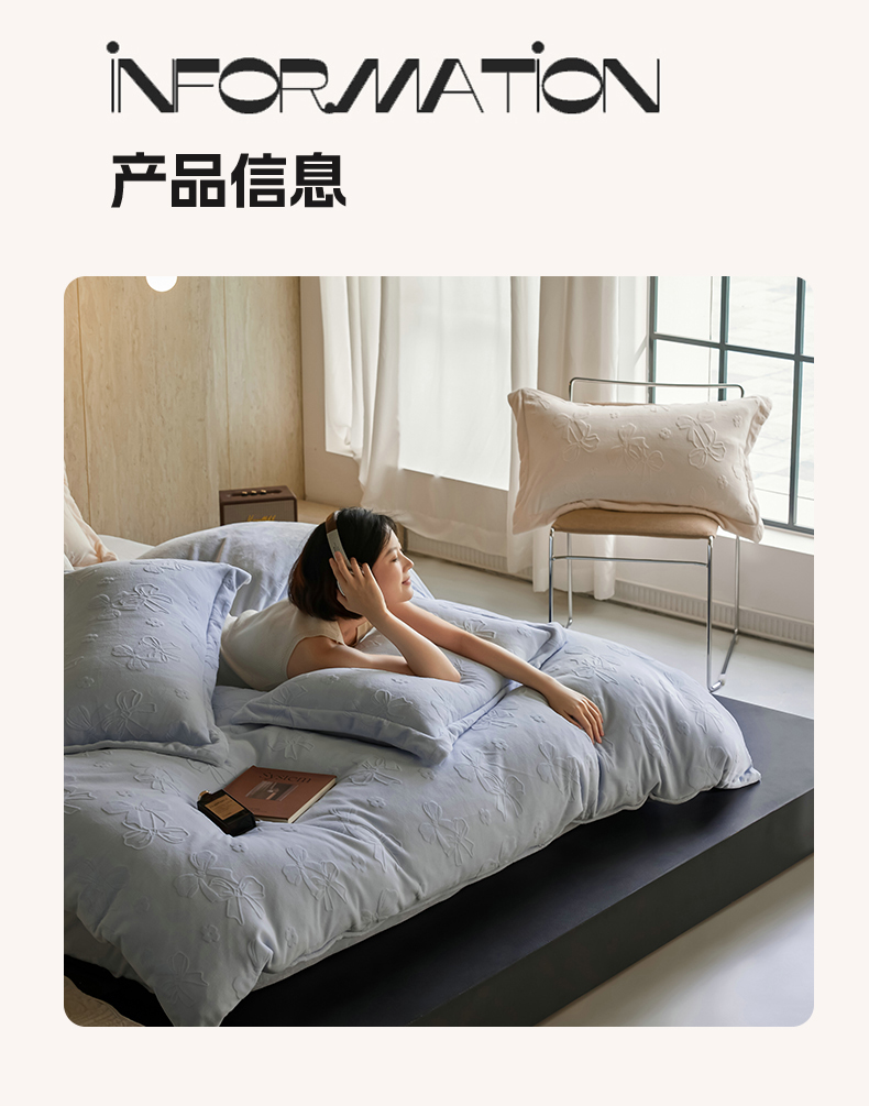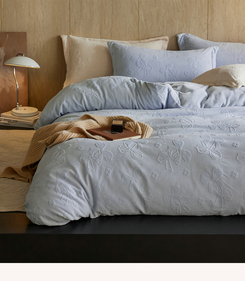 当前位置: 91家纺网 > 商品网购 > 床品套件 > 四件套 > 牛奶绒四件套 > 亿梵家居 2025秋冬新款A类全消光牛奶绒立体5D雕花绒四件套-风格一 (提供买家秀) 蝴蝶结-天空蓝