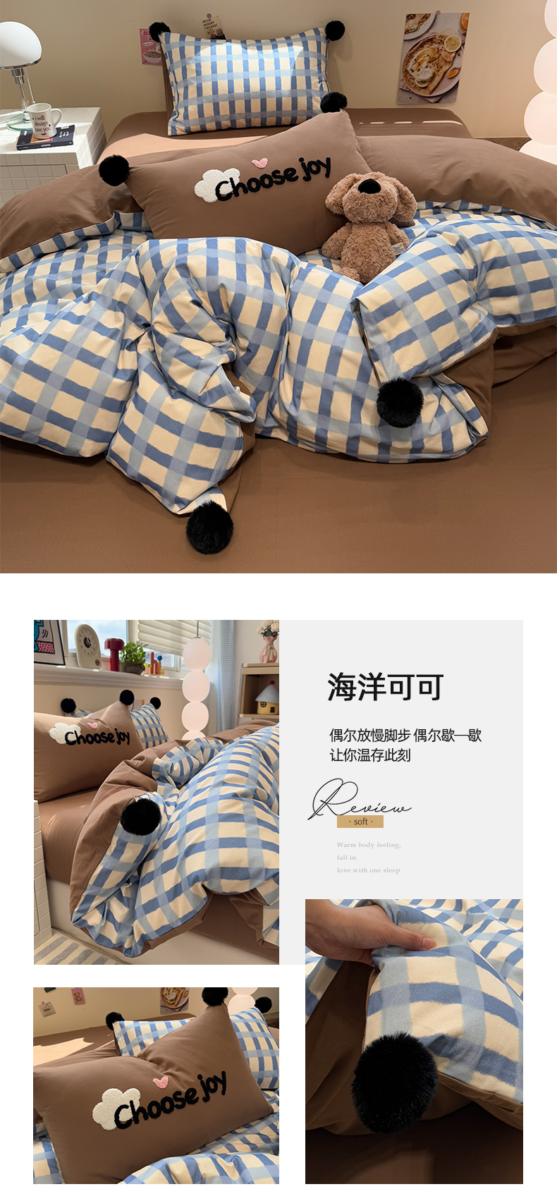 (总)呗旺鹿 2025新款A版全棉B版牛奶绒四件套,冰岛小马,萌星,糖果小马,小狗笔记,费尔岛小熊