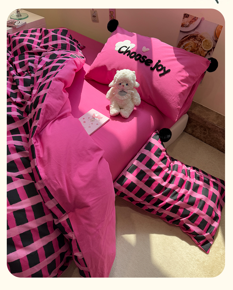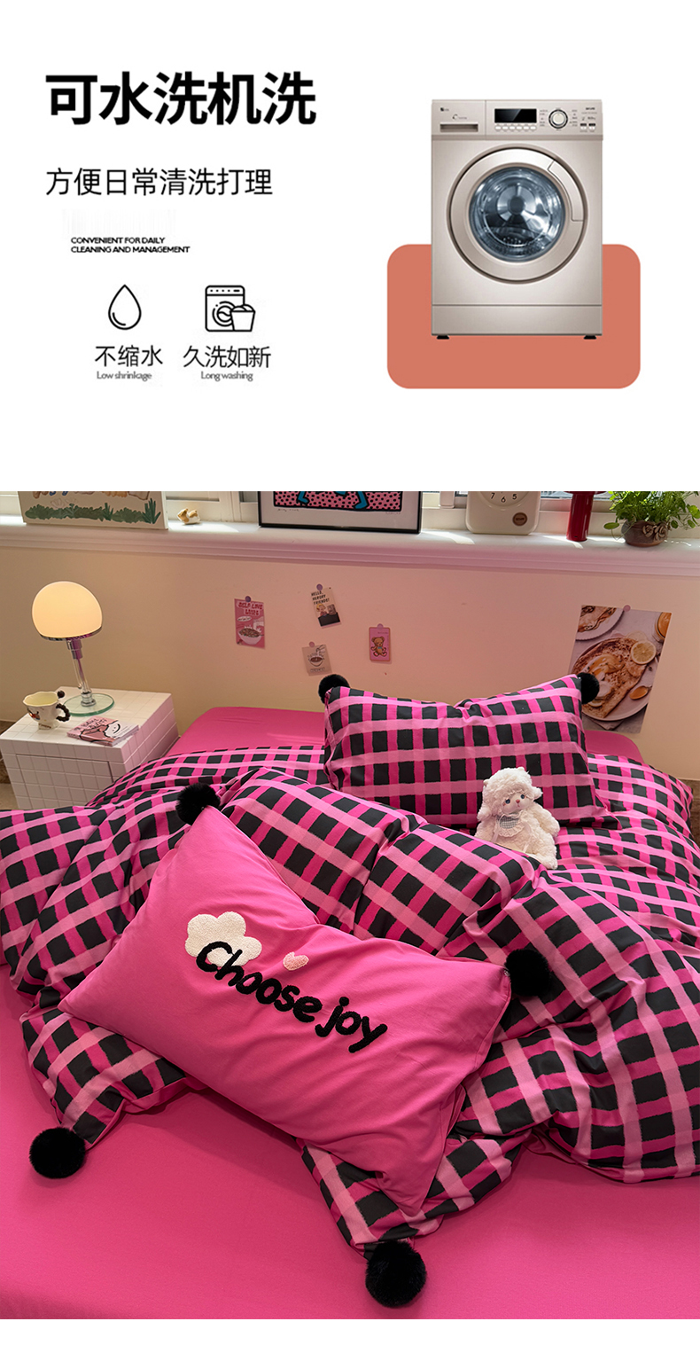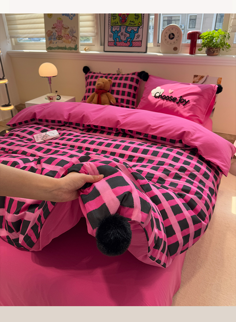呗旺鹿 2025新款全棉磨毛球球工艺款四件套 西瓜紫
