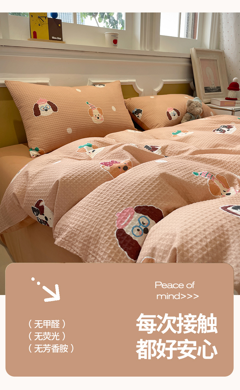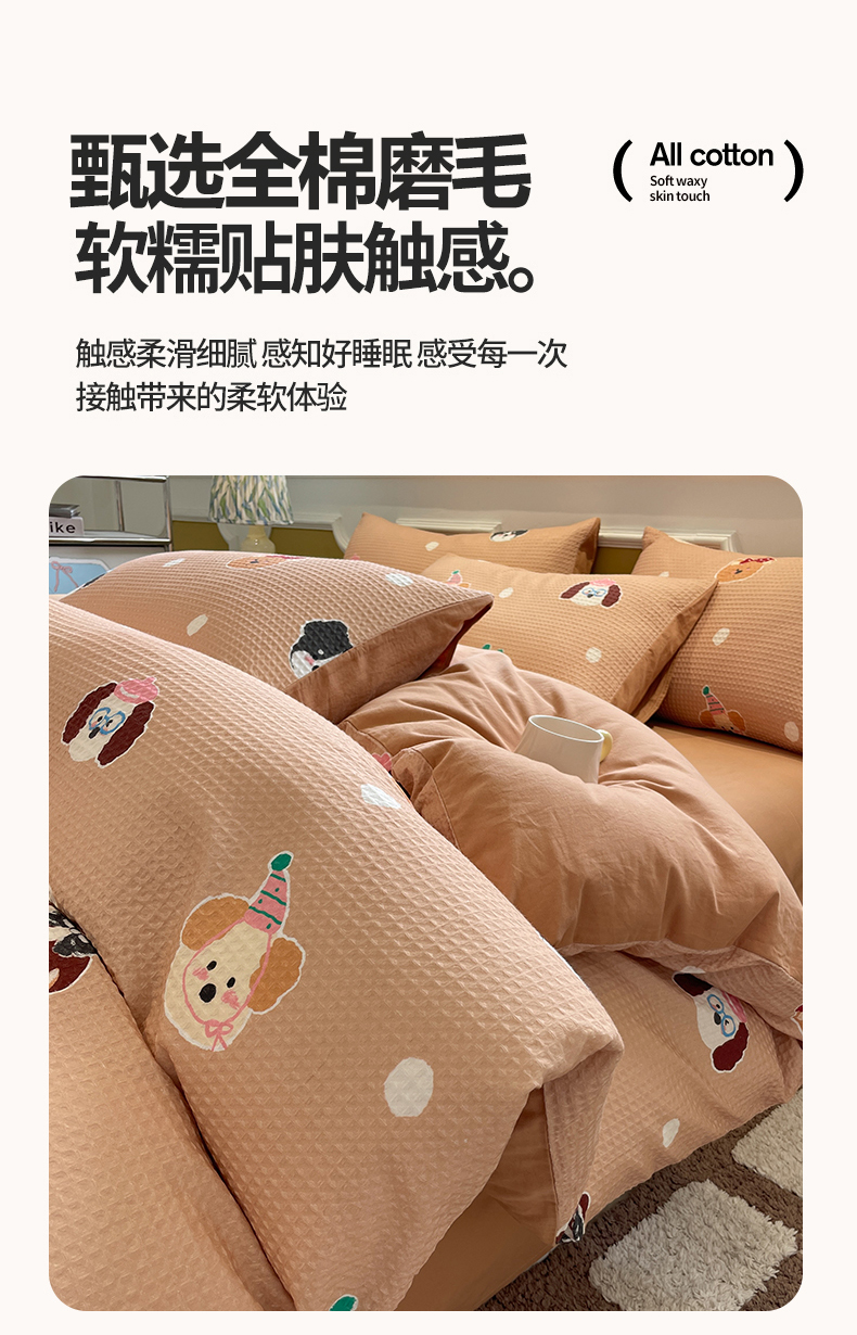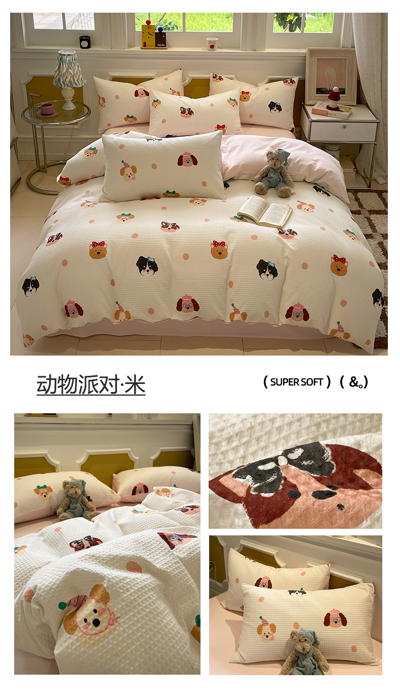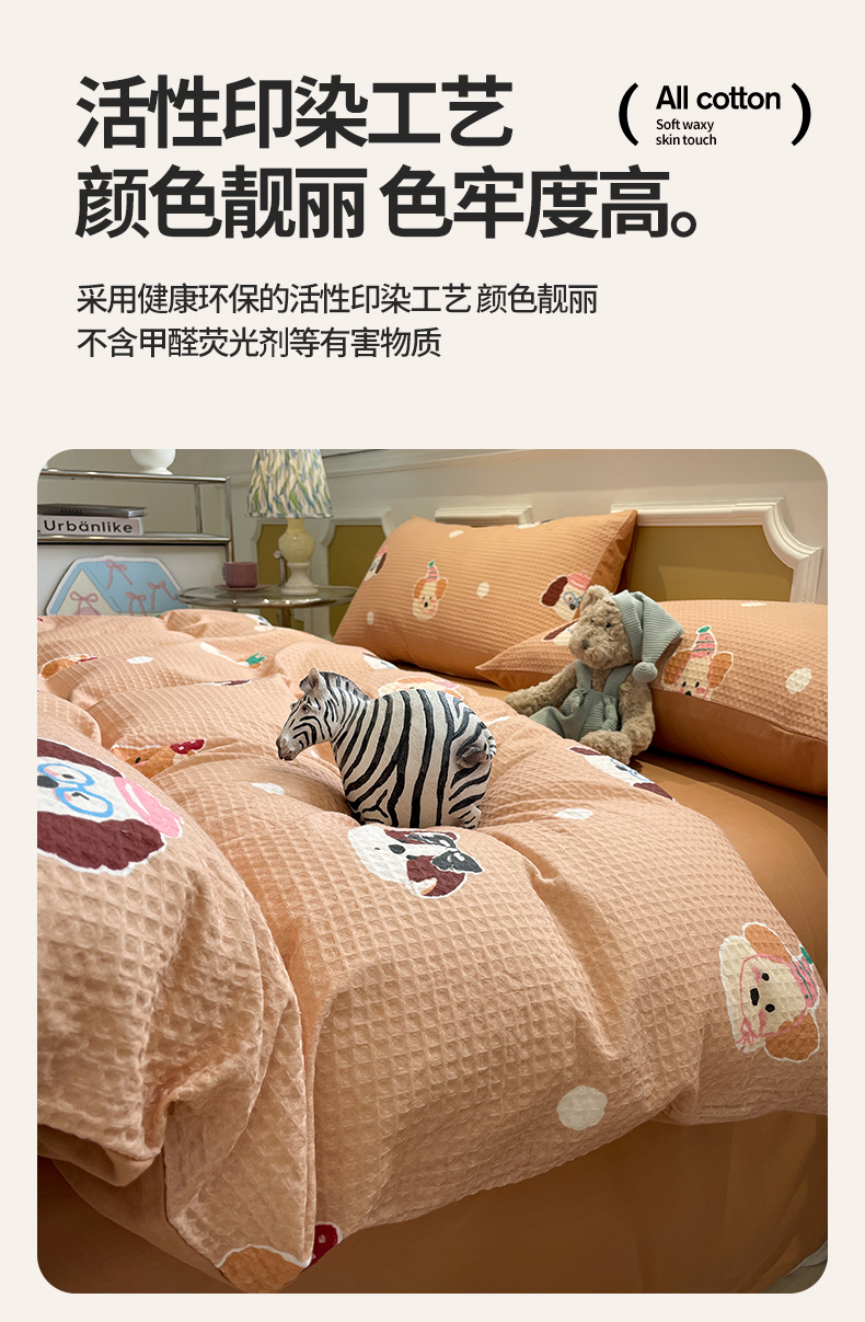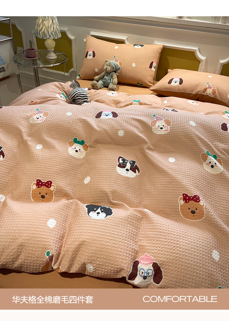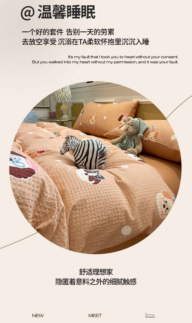 当前位置: 91家纺网 > 商品网购 > 床品套件 > 四件套 > 全棉普通四件套 > 小叮当家纺仓储工厂店 2025新款提供买家秀爆款花型不断货全棉纯棉A类华夫格印花磨毛四件套 动物派对-棕